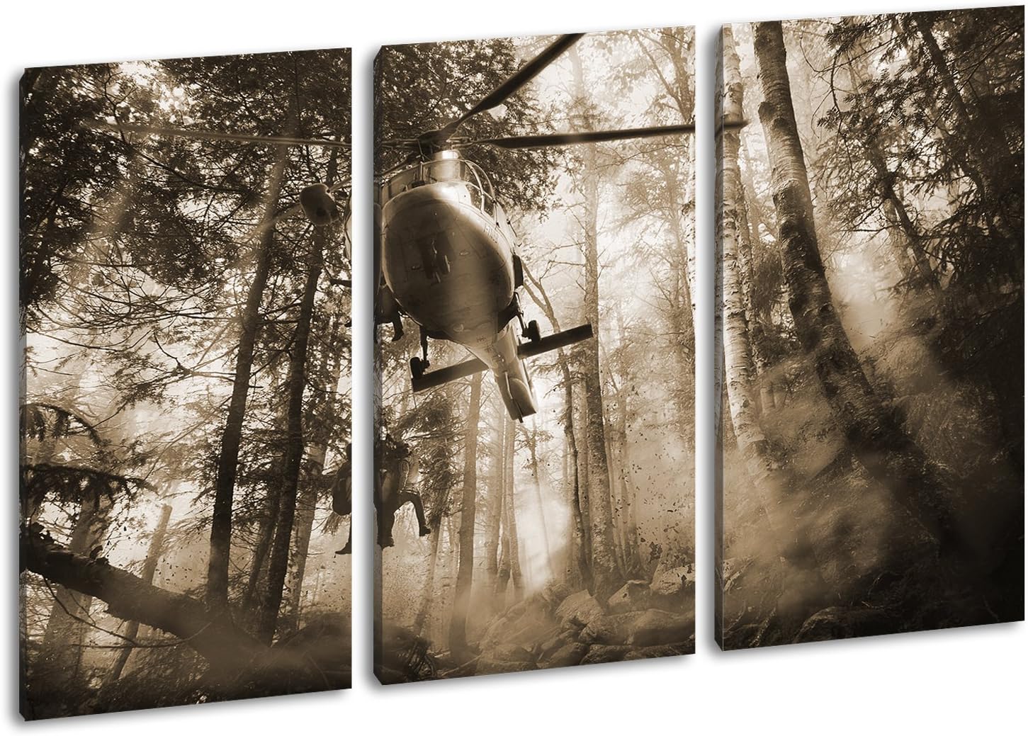 deyoli Rettungshubschrauber bei Waldbrand Format: 3-teilig 120x80 Effekt: Sepia als Leinwand, Motiv