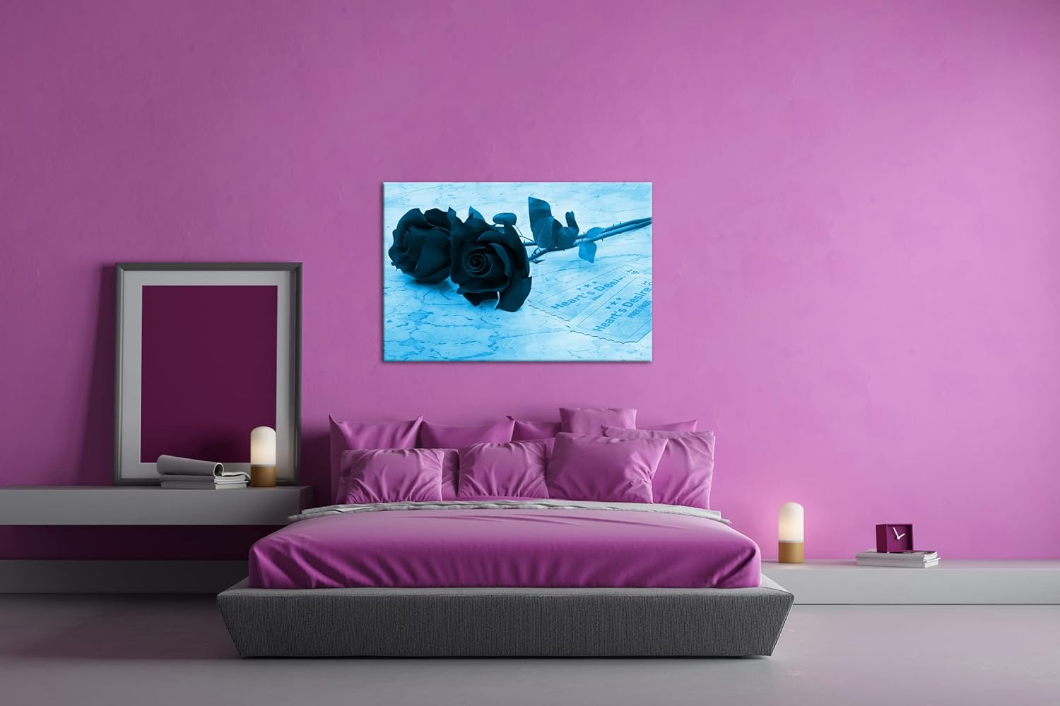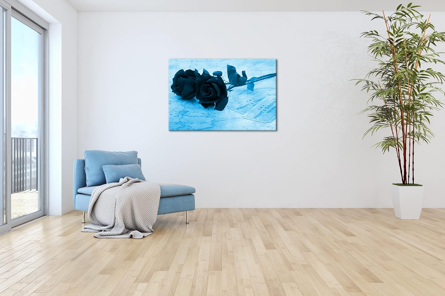 deyoli romantische Rosen Format: 60x40 Effekt: Monocrome Blau als Leinwand, Motiv fertig gerahmt auf