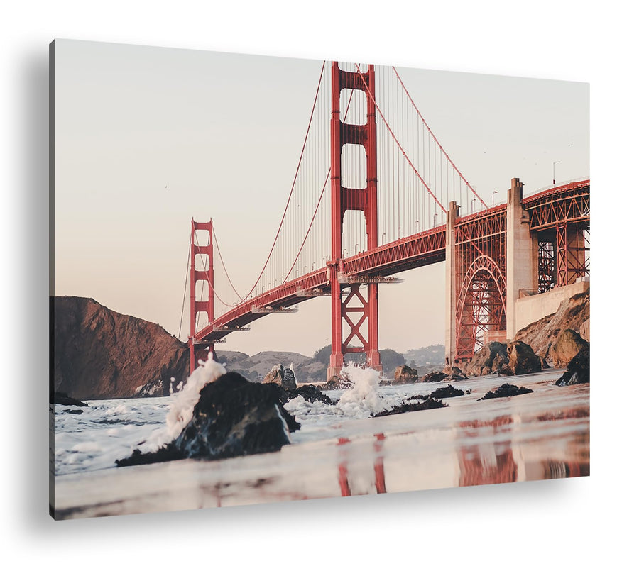 deyoli rote Golden Gate Brücke Format: 100x70 cm als Leinwandbild, Motiv fertig gerahmt auf Echtholz