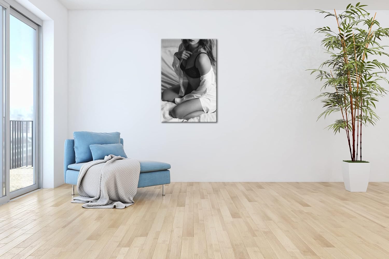deyoli sexy Frau im Hemd Format:90x60 cm als Leinwandbild, Motiv fertig gerahmt auf Echtholzrahmen,