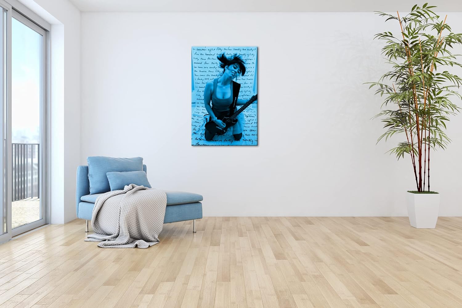 deyoli Sexy Gitarrenspielerin Format 100x70 Effekt: Monocrome Blau als Leinwandbild, Motiv fertig ge