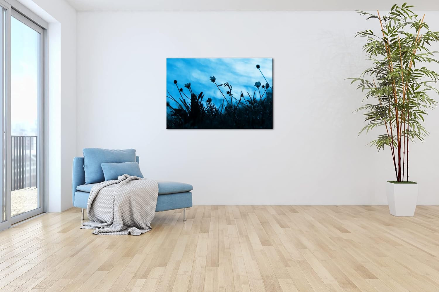 deyoli Sonnenuntergang mit schöner Wiese Format 80x60 Effekt: Monocrome Blau als Leinwandbild, Motiv