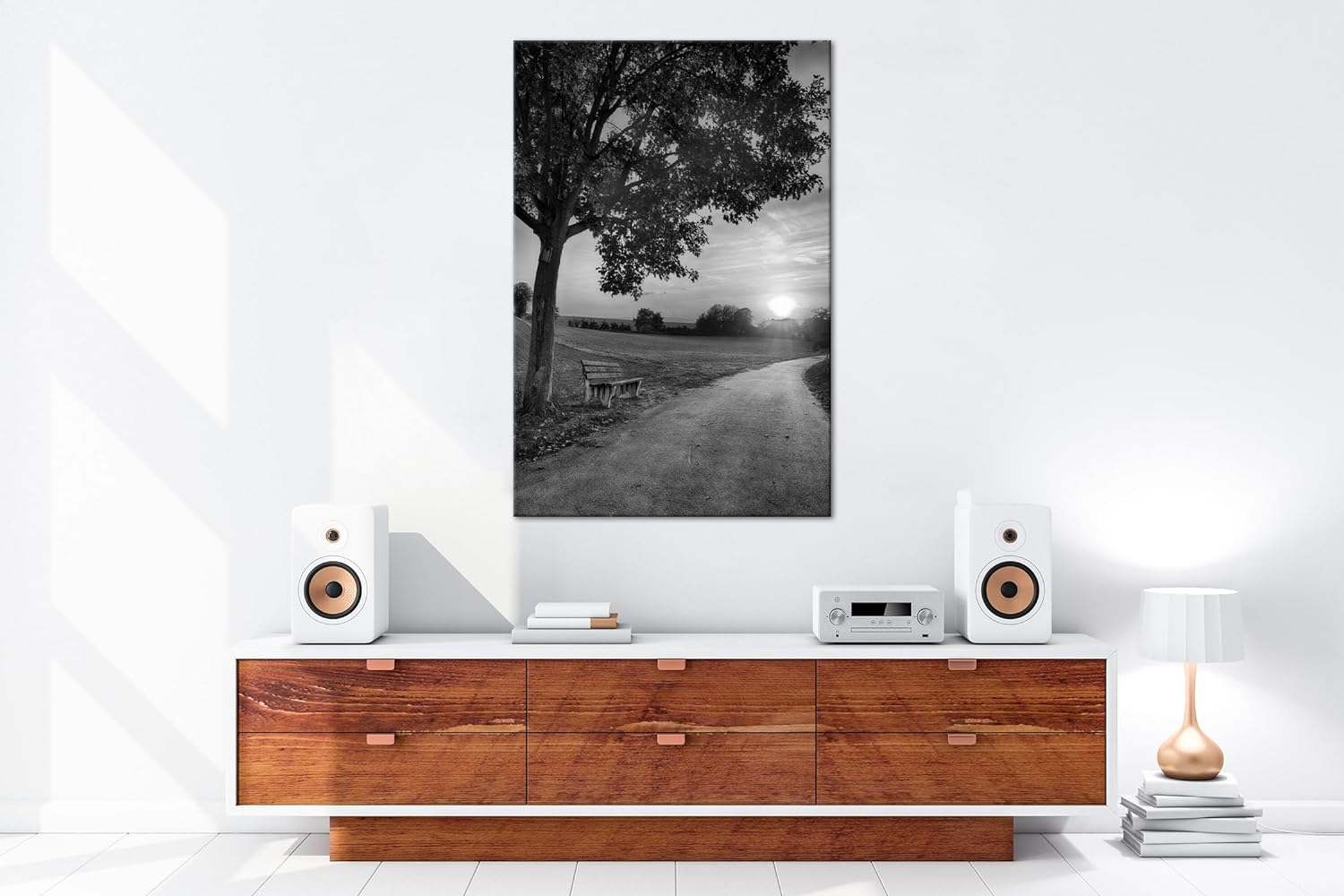 deyoli Spazierweg am Abend Format: 60x40 Effekt: Monocrome Blau als Leinwand, Motiv fertig gerahmt a