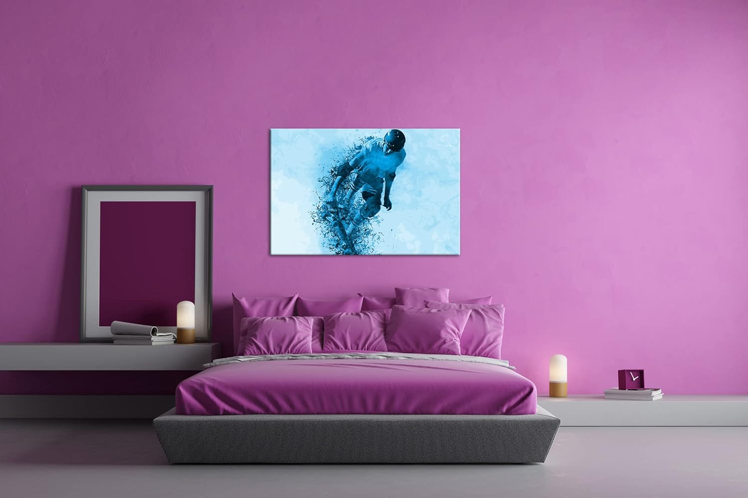 deyoli Spingender Skater Illustration Format 60x40 Effekt: Monocrome Blau als Leinwandbild, Motiv fe