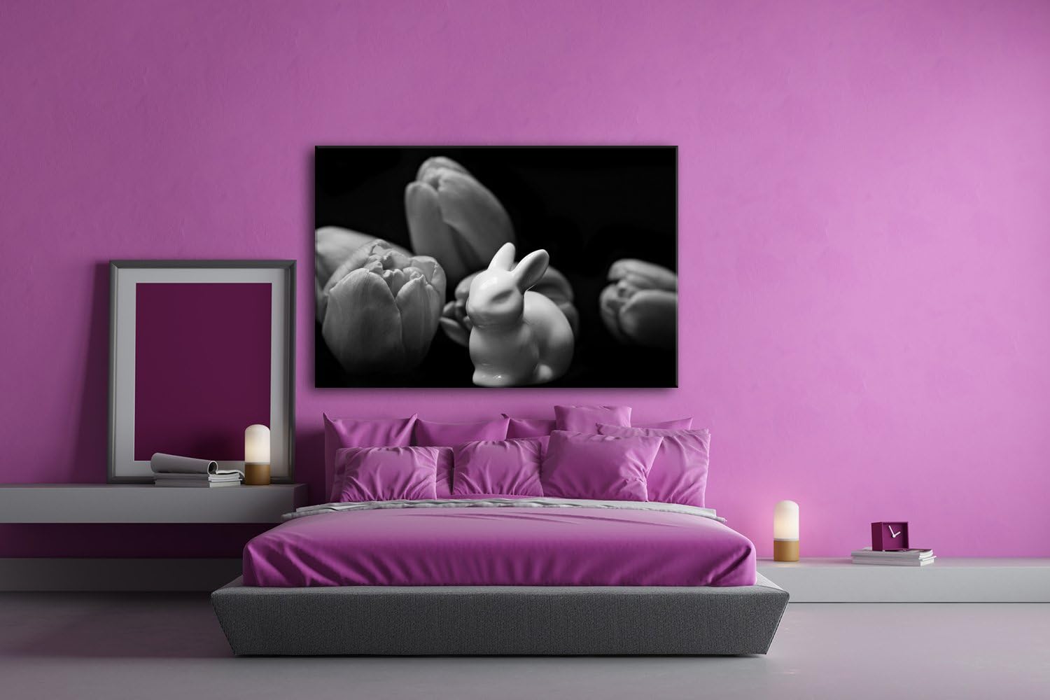 deyoli süsses Porzellan Häschen Format: 100x70 Effekt: Schwarz/Weiss als Leinwand, Motiv fertig gera