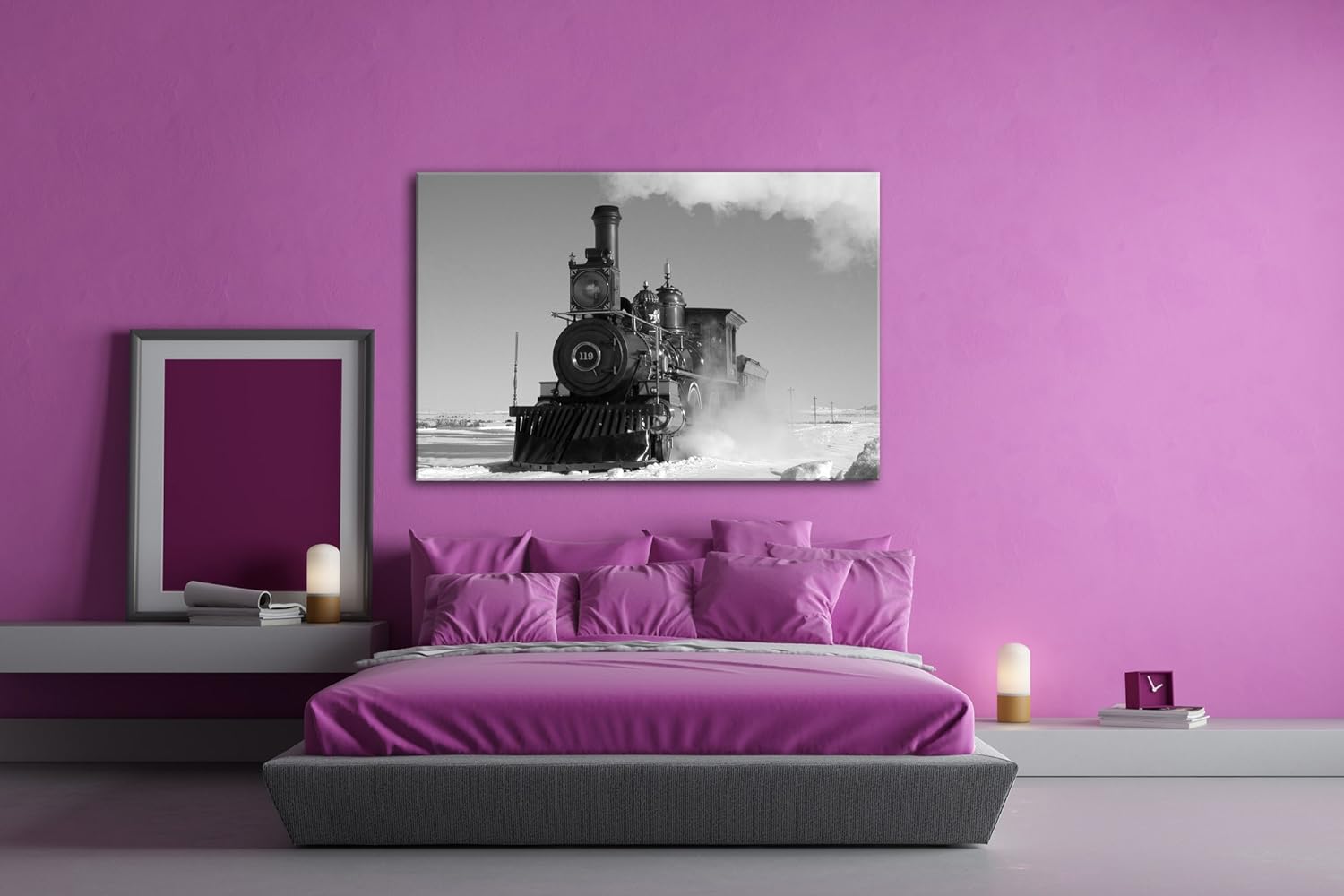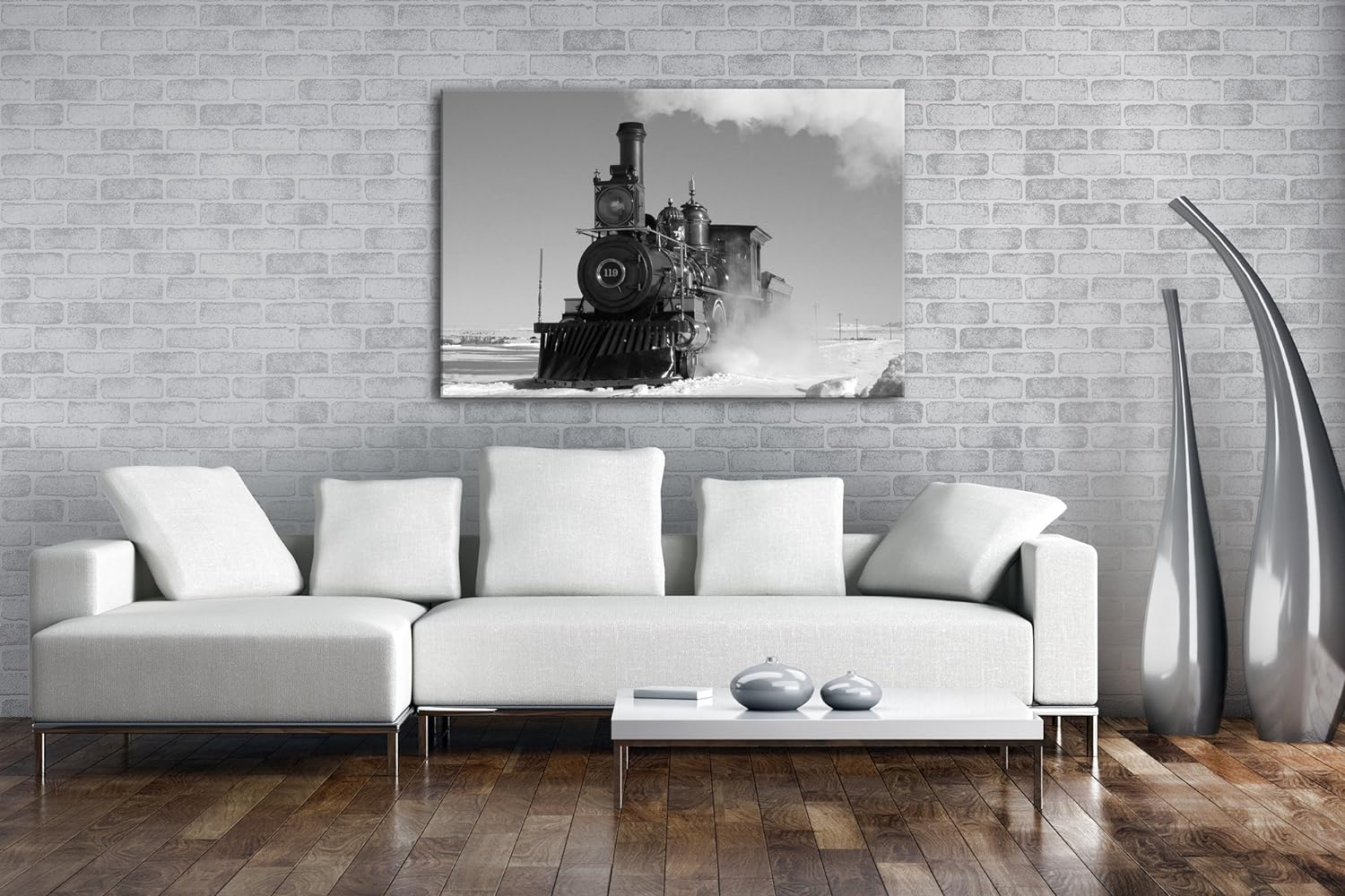 deyoli starke alte Dampflokomotive Effekt: Schwarz/Weiss Format: 80x60 als Leinwandbild, Motiv ferti