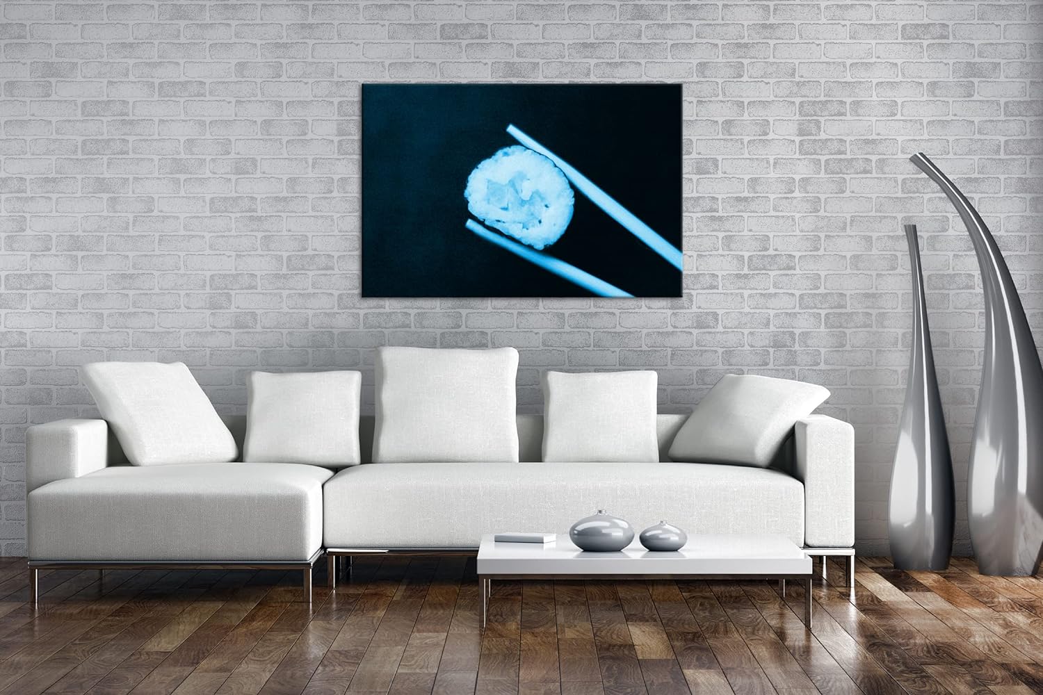 deyoli Sushi auf Essstäbchen Format 80x60 Effekt: Monocrome Blau als Leinwandbild, Motiv fertig gera