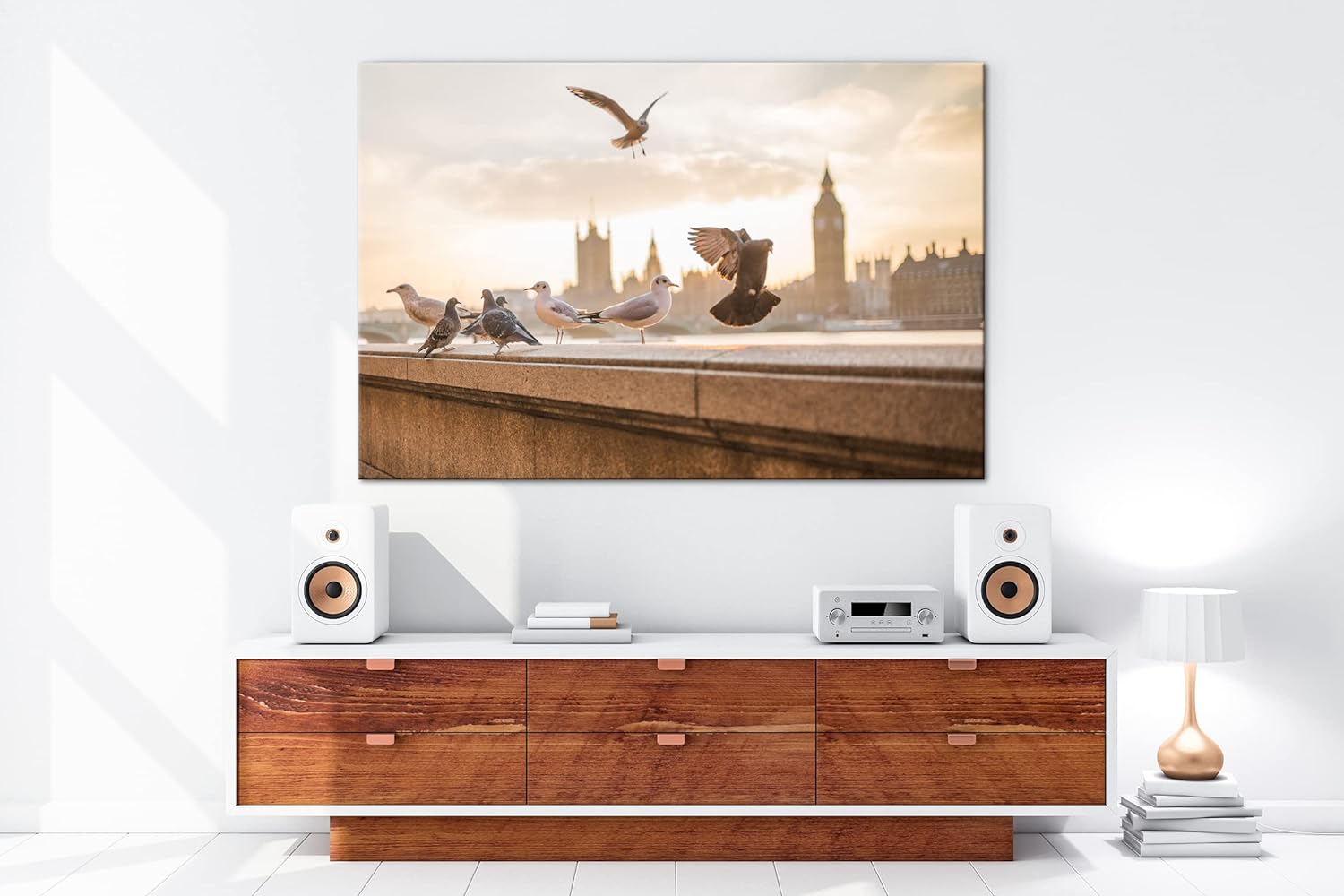 deyoli Tauben in London Format: 100x70 cm als Leinwandbild, Motiv fertig gerahmt auf Echtholzrahmen,