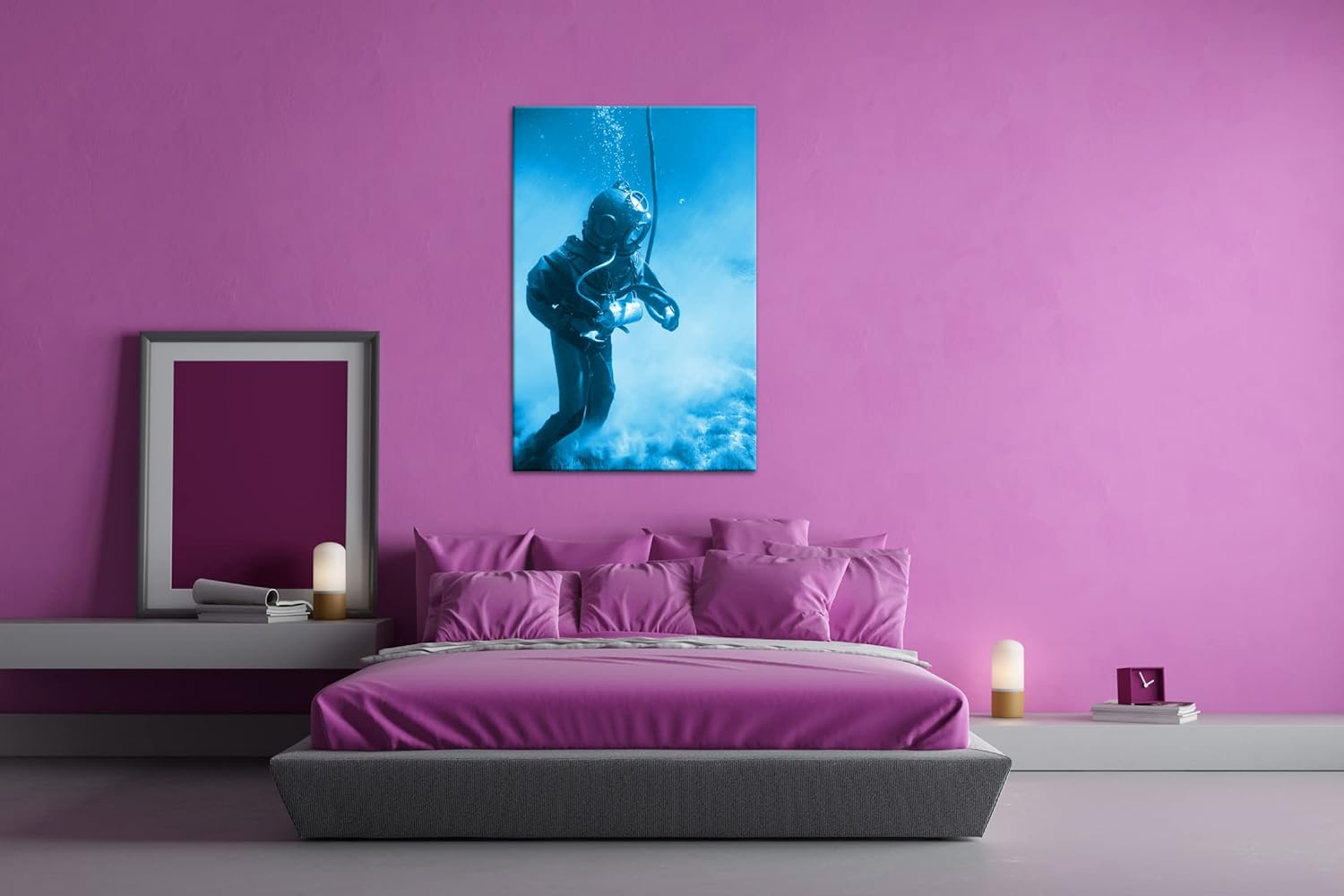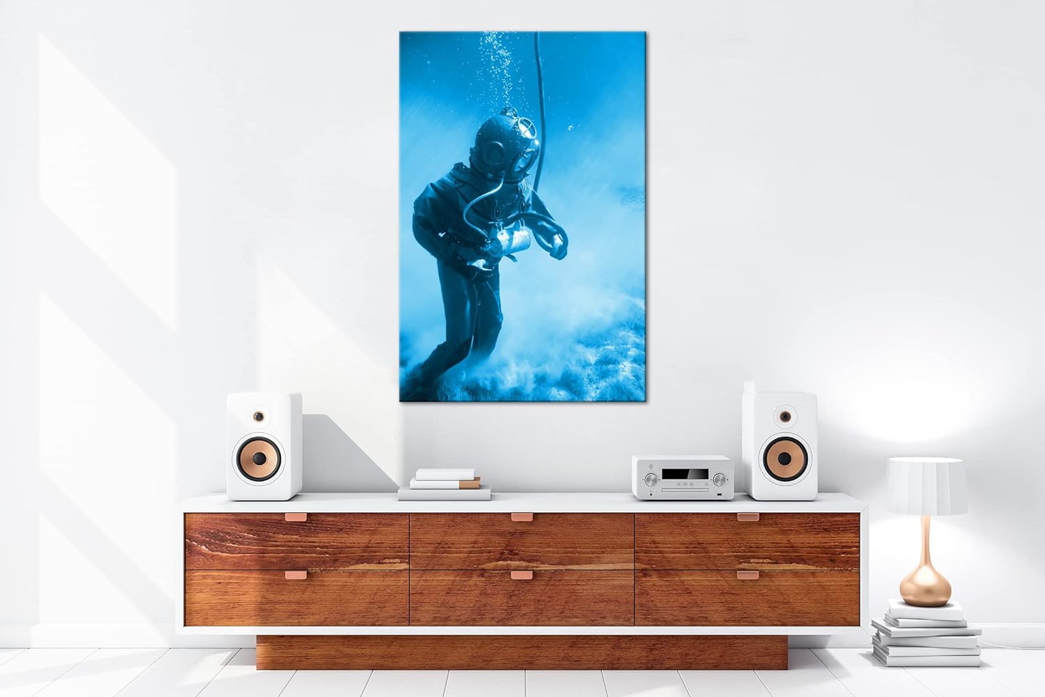 deyoli Taucher in einer alten Ausrüstung Format 80x60 Effekt: Monocrome Blau als Leinwandbild, Motiv