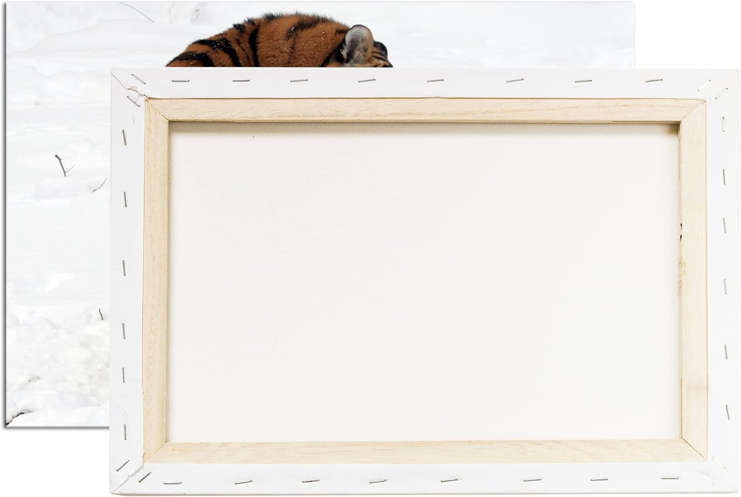 deyoli Tigermutter mit Jungtier in schöner Schneelandschaft im Format: 100x70 als Leinwandbild, Moti