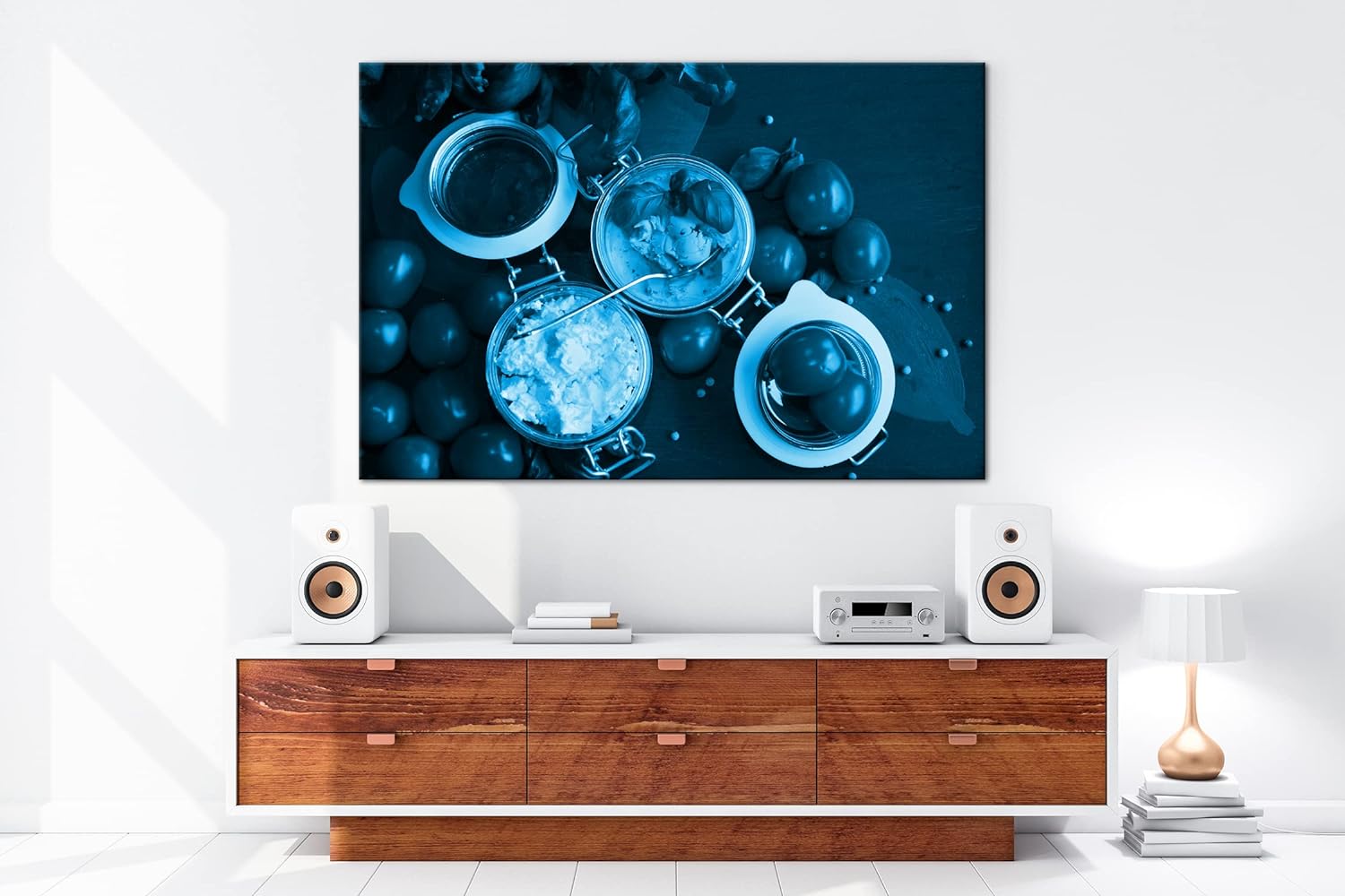 deyoli Tomaten Schafskäse und Basilikum Format 60x40 Effekt: Monocrome Blau als Leinwandbild, Motiv