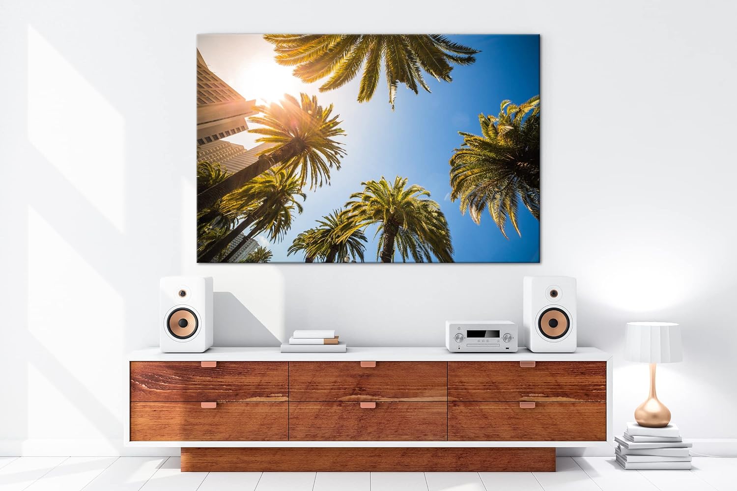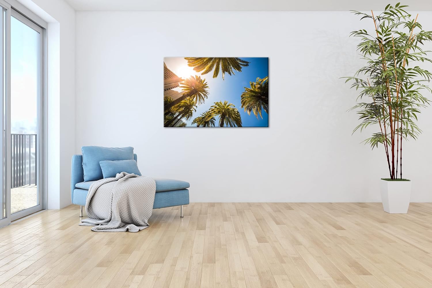 deyoli tropische Stadt mit Palmen Format: 100x70 als Leinwand, Motiv fertig gerahmt auf Echtholzrahm