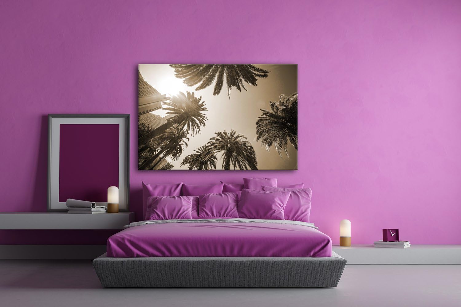deyoli tropische Stadt mit Palmen Format: 100x70 Effekt: Sepia als Leinwand, Motiv fertig gerahmt au