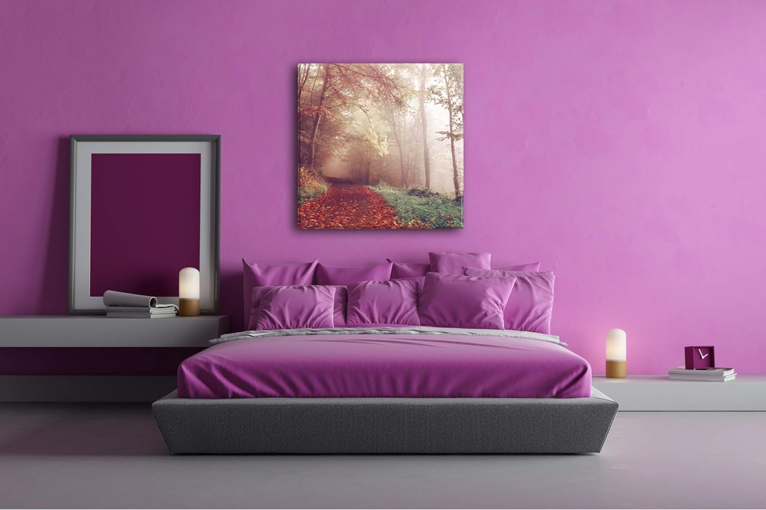 deyoli vernebelter Waldweg im Herbst Format: 70x70 als Leinwand, Motiv fertig gerahmt auf Echtholzra