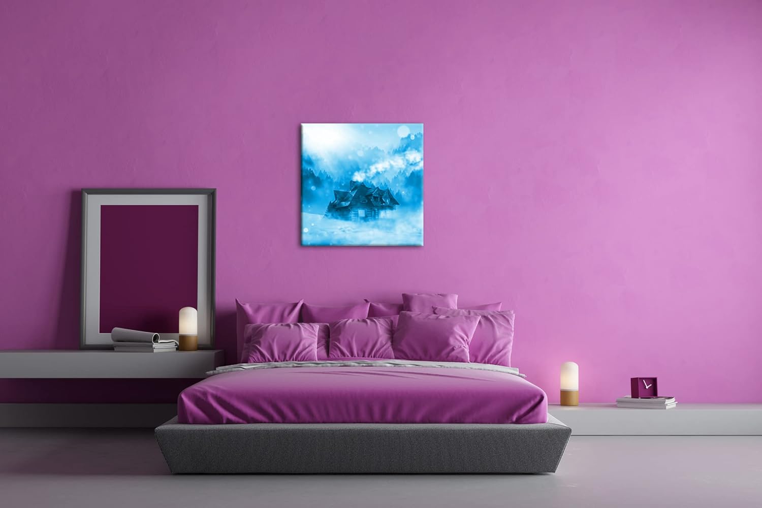deyoli verschneite Berghütte Format: 60x60 Effekt: Monocrome Blau als Leinwand, Motiv fertig gerahmt