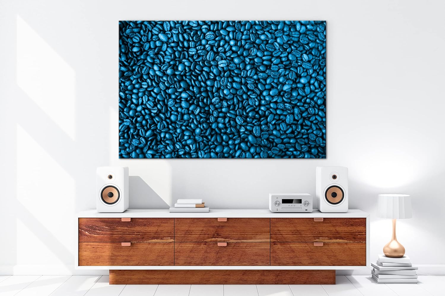 deyoli viele Kaffeebohnen Format 80x60 Effekt: Monocrome Blau als Leinwandbild, Motiv fertig gerahmt