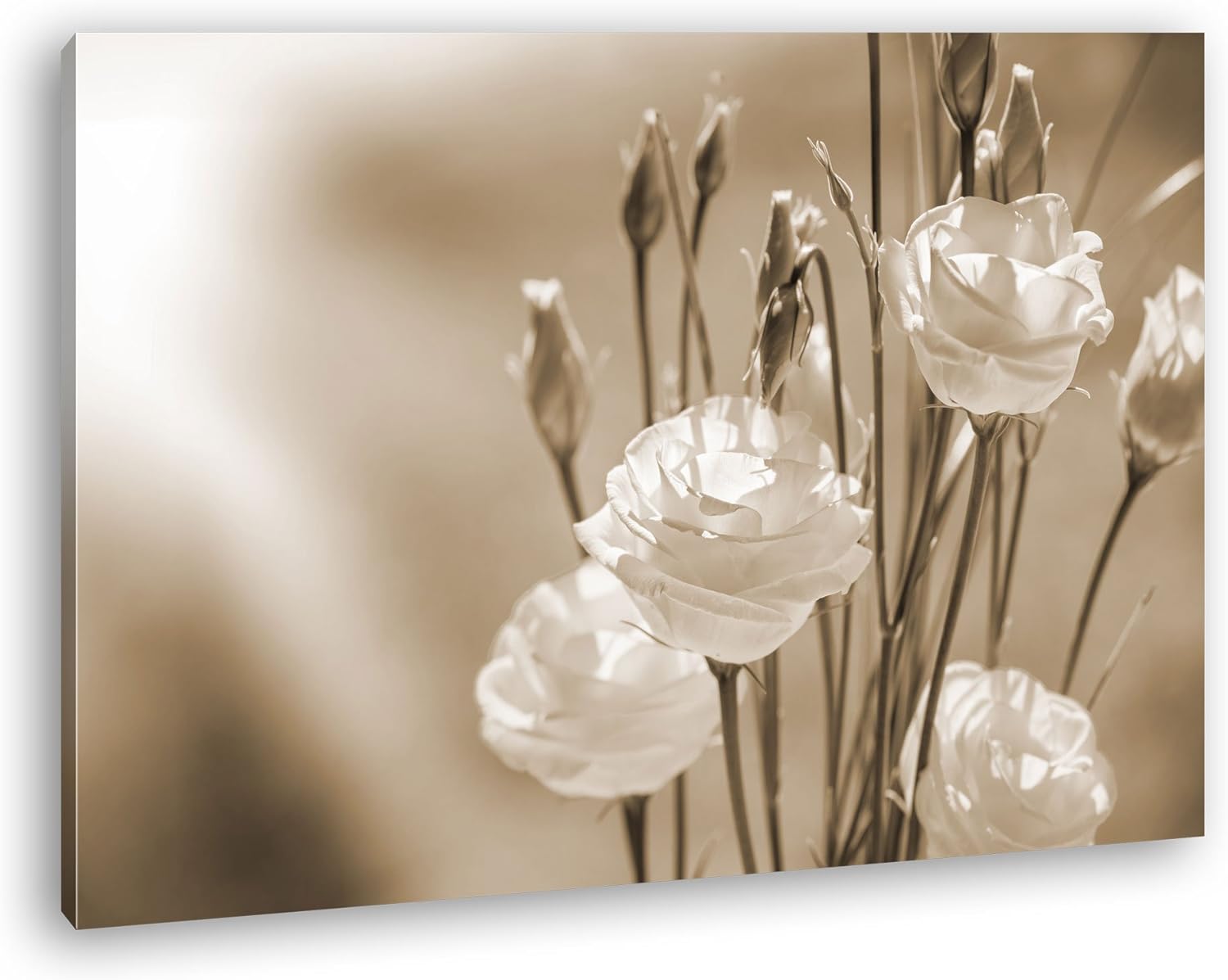 deyoli weisser Blumenstrauss Format: 100x70 Effekt: Sepia als Leinwandbild, Motiv fertig gerahmt auf
