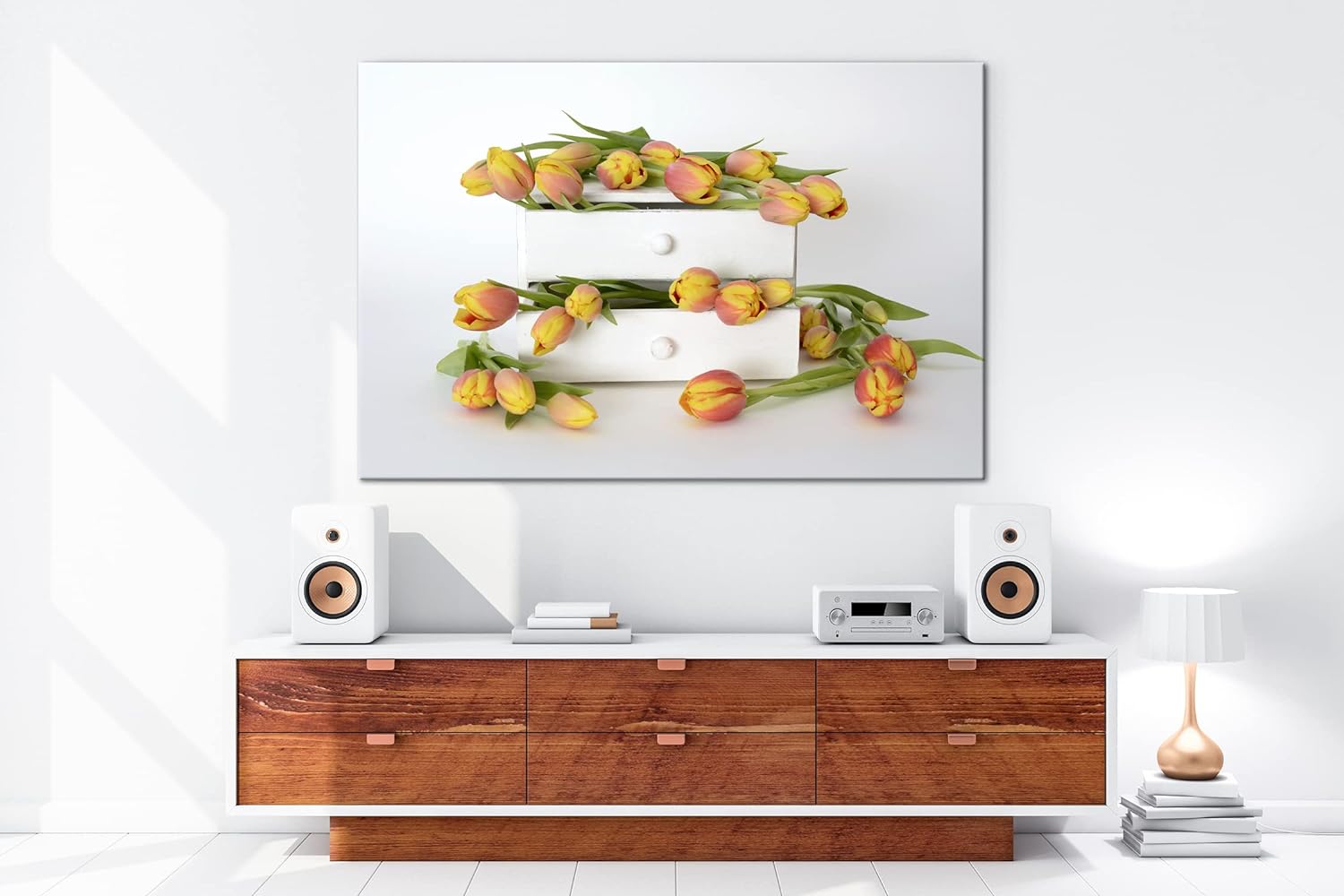 deyoli wild verstreute Tulpen Format: 80x60 als Leinwand, Motiv fertig gerahmt auf Echtholzrahmen, H
