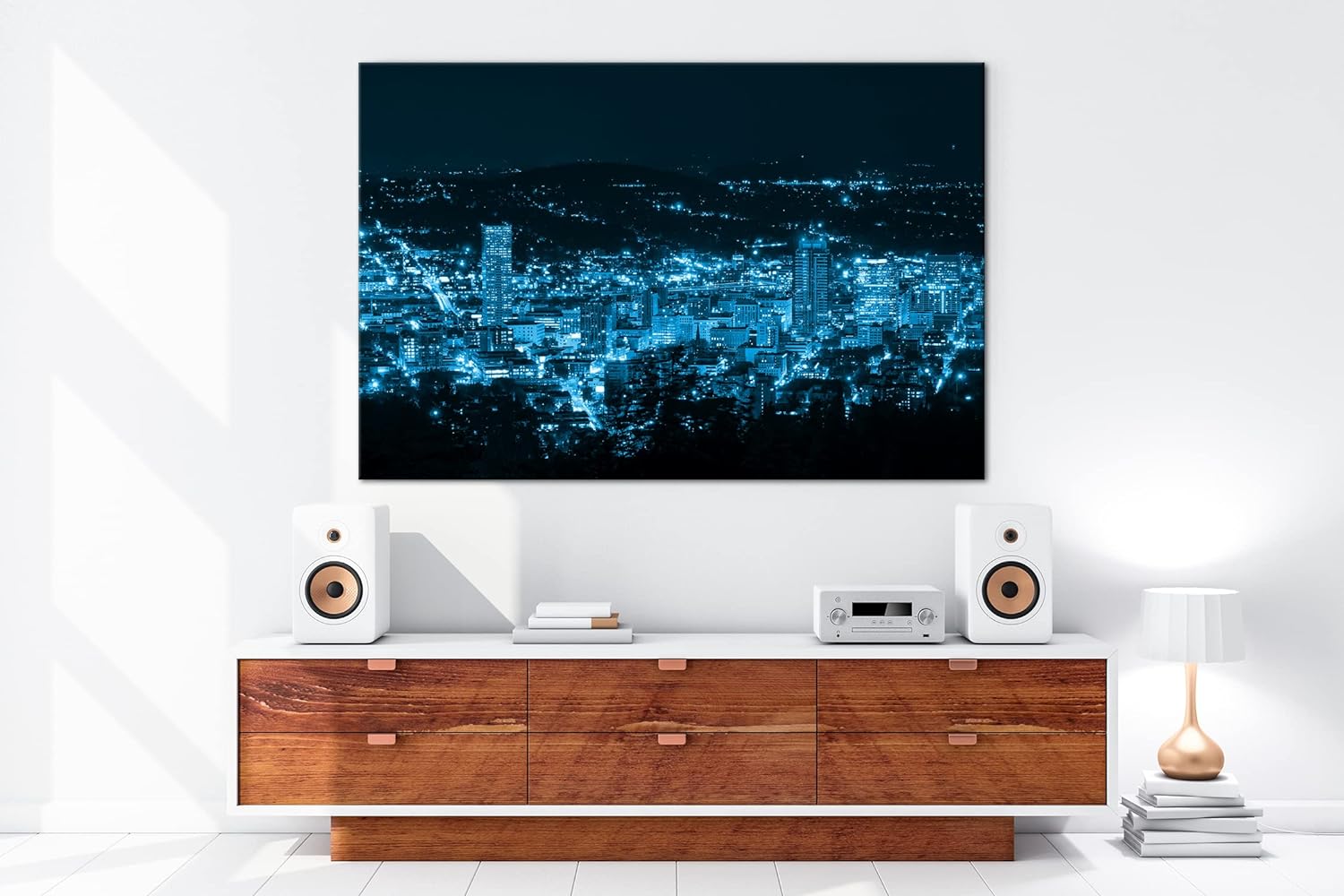 deyoli zauberhafte Lichter einer Grossstadt Format: 80x60 Effekt: Monocrome Blau als Leinwand, Motiv