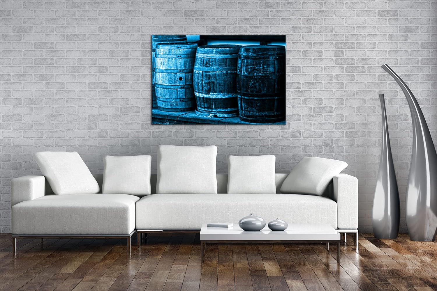 deyoli alte Holzfässer mit Wein Format 80x60 Effekt: Monocrome Blau als Leinwandbild, Motiv fertig g