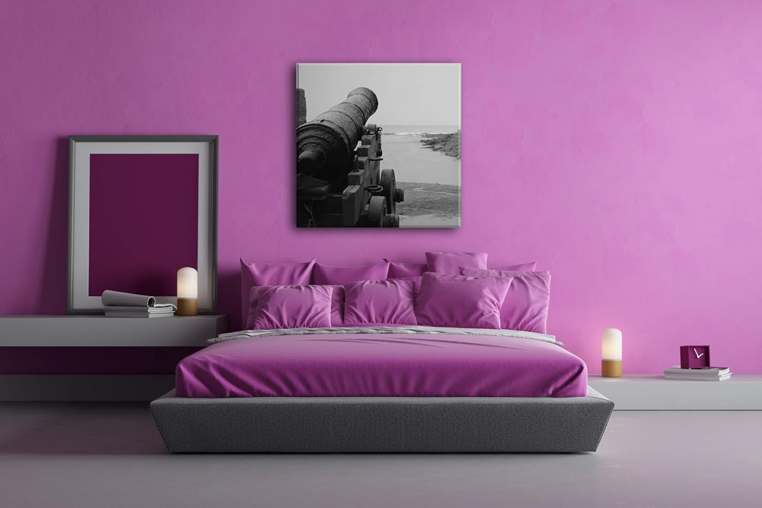 deyoli alte Kanone am Küstenufer Format: 70x70 Effekt: Schwarz&Weiss als Leinwandbild, Motiv auf Ech