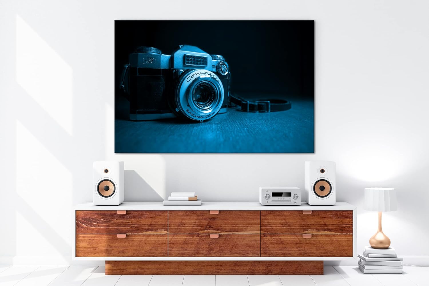deyoli Altmodische Analogkamera Format 80x60 Effekt: Monocrome Blau als Leinwandbild, Motiv fertig g