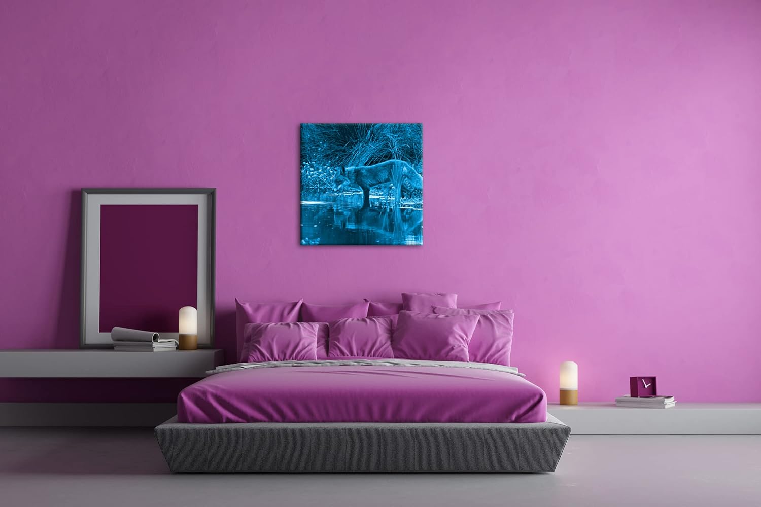 deyoli Anmutiger Fuchs am Wasser Format: 70x70 Effekt: Monocrome Blau als Leinwandbild, Motiv fertig