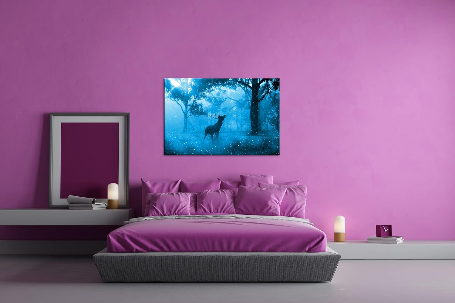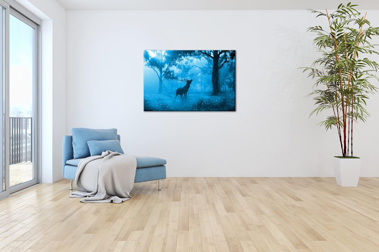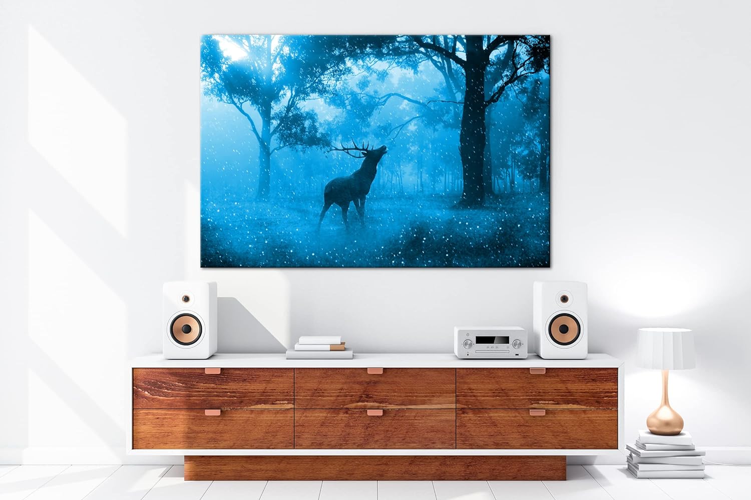 deyoli Anmutiger Hirsch bei Schnee Format: 80x60 Effekt: Monocrome Blau als Leinwandbild, Motiv fert