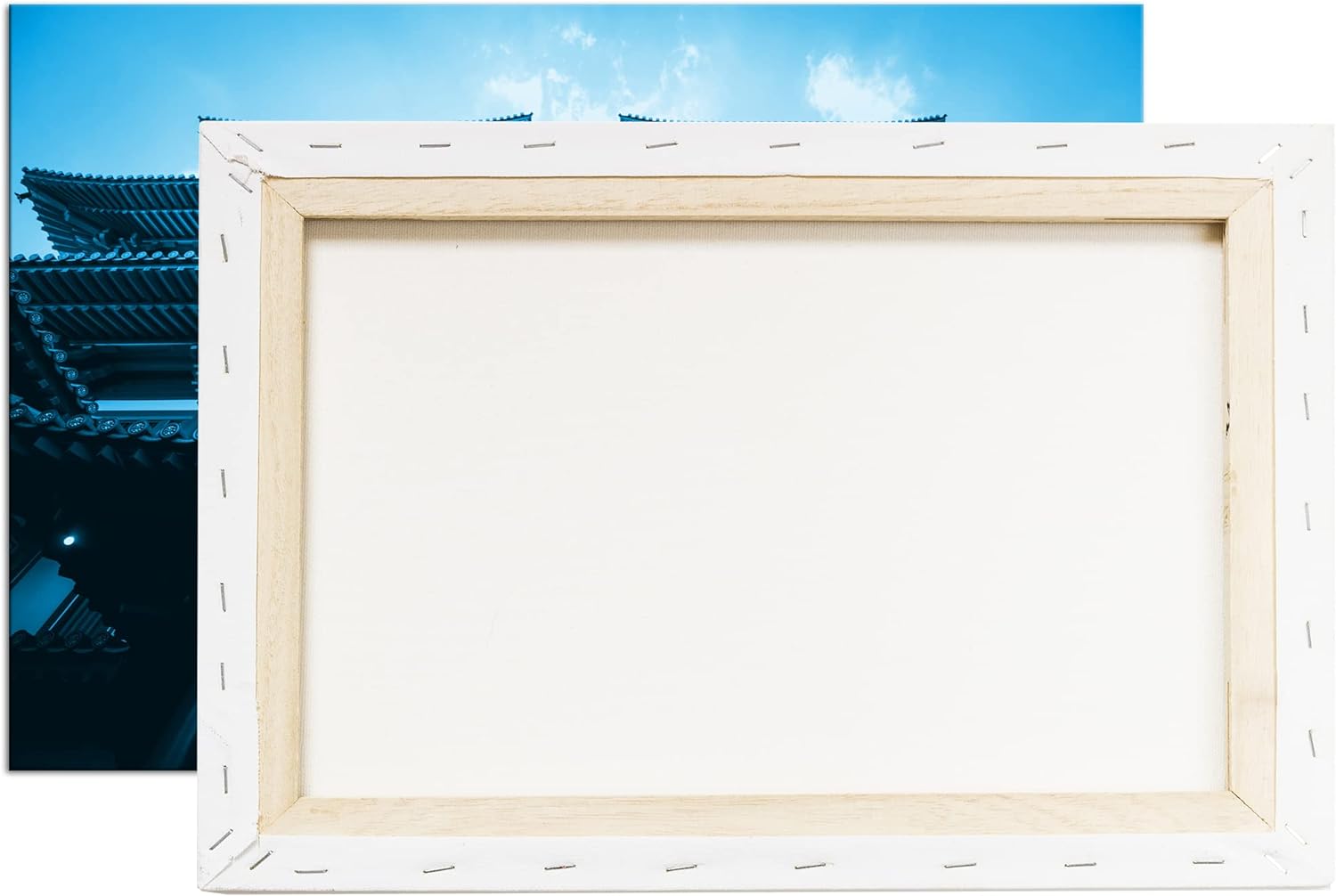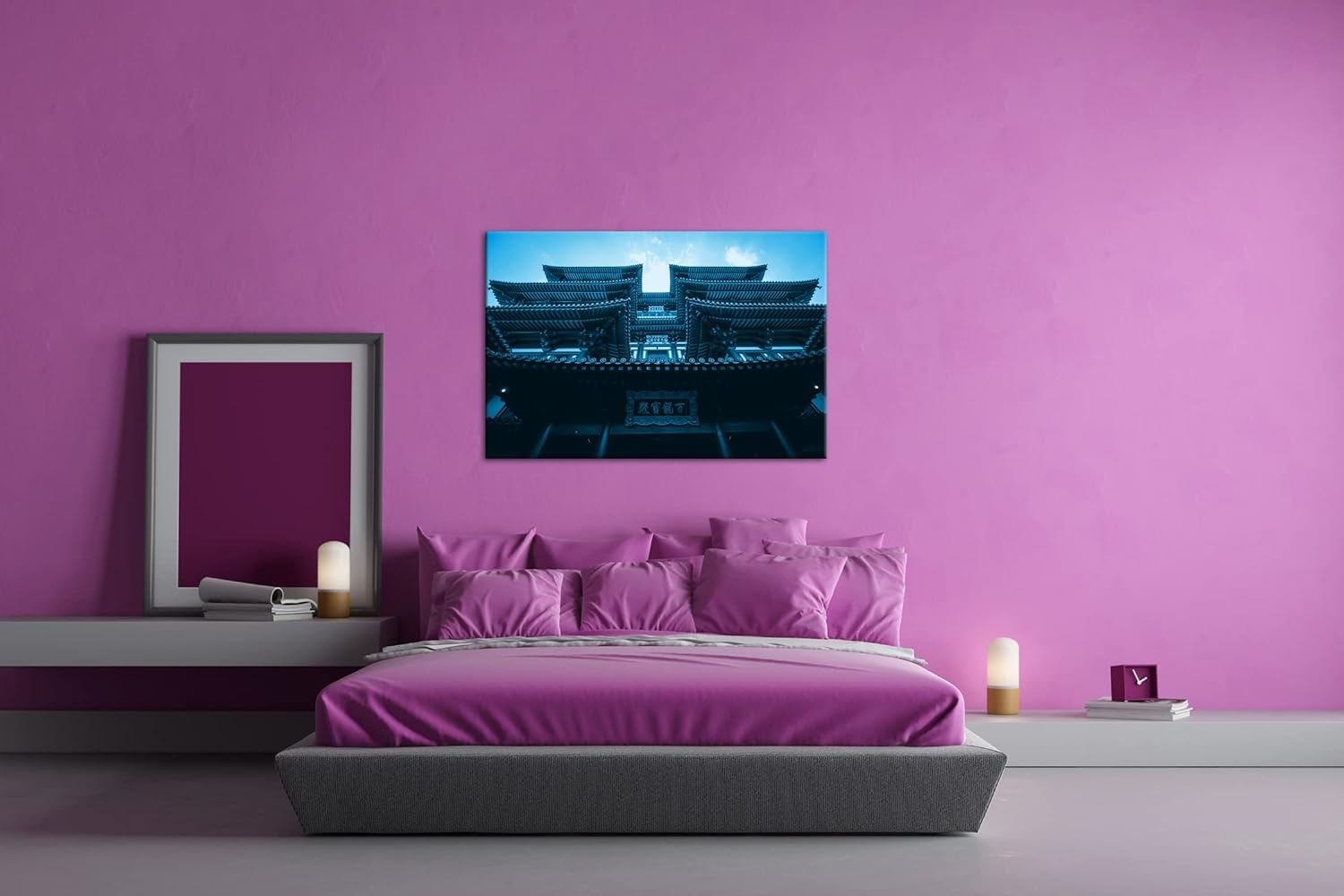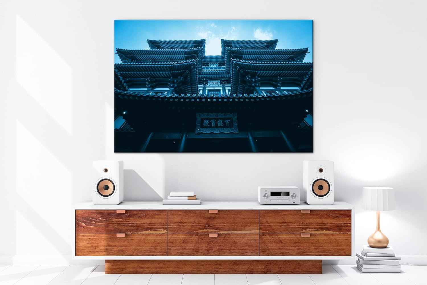 deyoli asiatischer Tempel Format: 80x60 Effekt: Monocrome Blau als Leinwand, Motiv fertig gerahmt au