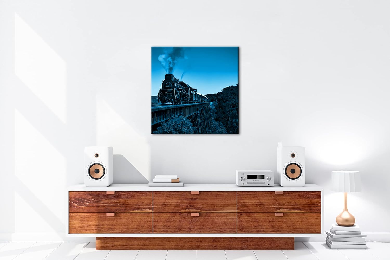 deyoli Atemberaubend altmodische Lokomotive Format: 60x60 Effekt: Monocrome Blau als Leinwandbild, M
