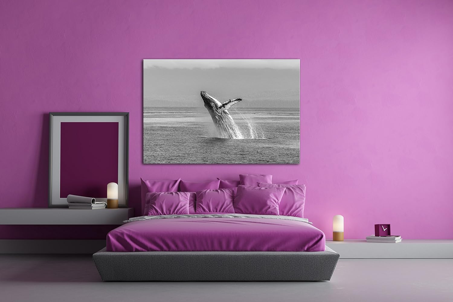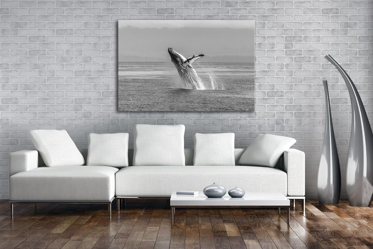 deyoli atemberaubender Buckelwal im Meer Effekt: Schwarz/Weiss im Format: 80x60 als Leinwandbild, Mo