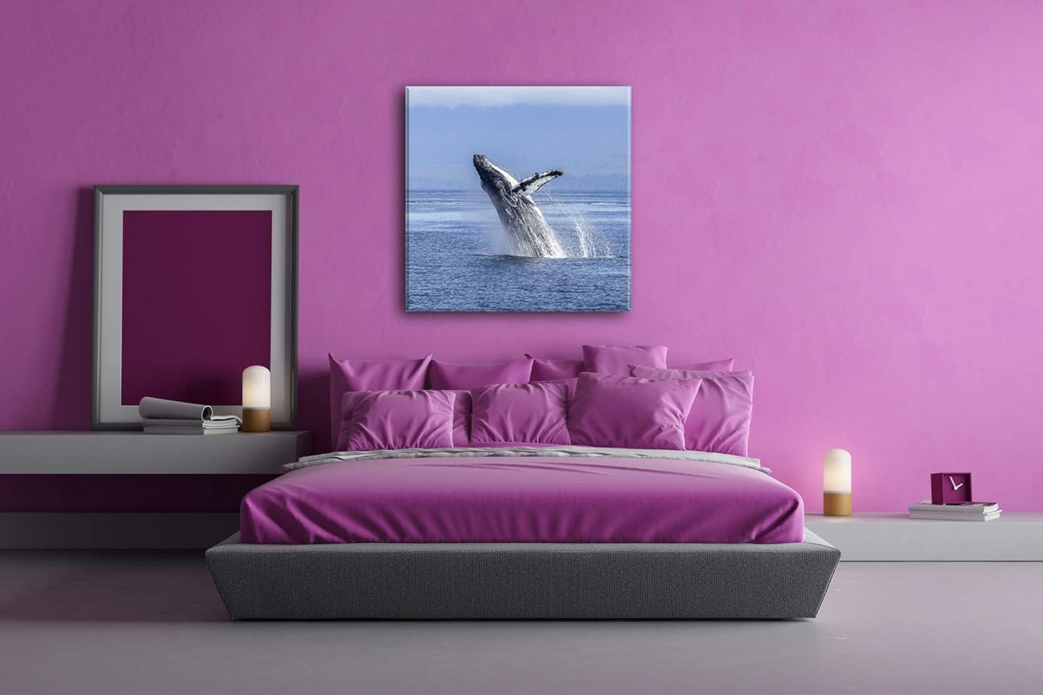 deyoli atemberaubender Buckelwal im Meer im Format: 70x70 als Leinwandbild, Motiv fertig gerahmt auf