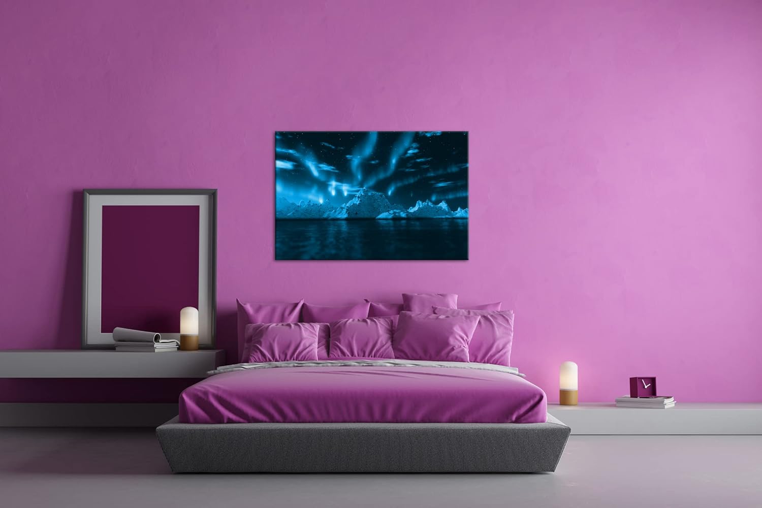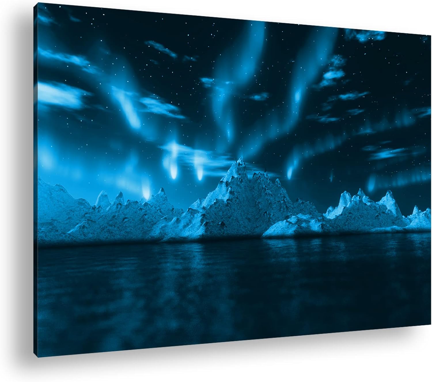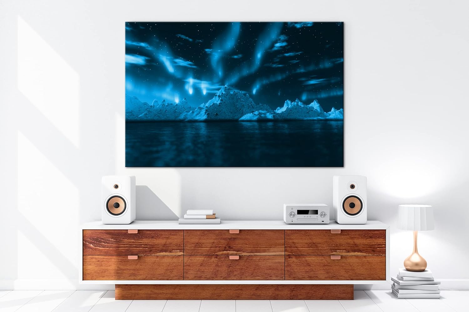 deyoli atemberaubender Polarlichter Format 80x60 Effekt: Monocrome Blau als Leinwandbild, Motiv fert