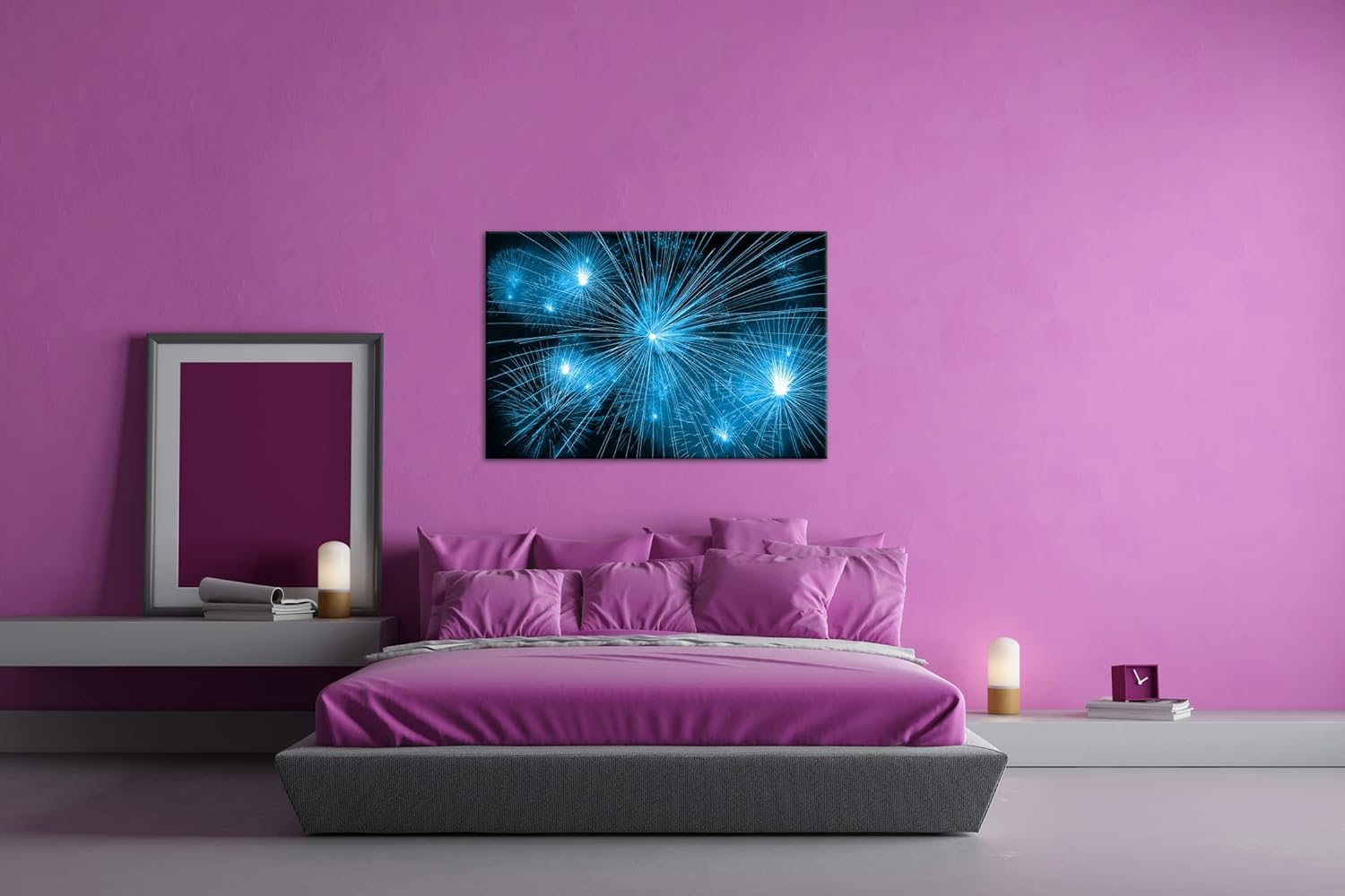 deyoli atemberaubendes Feuerwerk Format 80x60 Effekt: Monocrome Blau als Leinwandbild, Motiv fertig