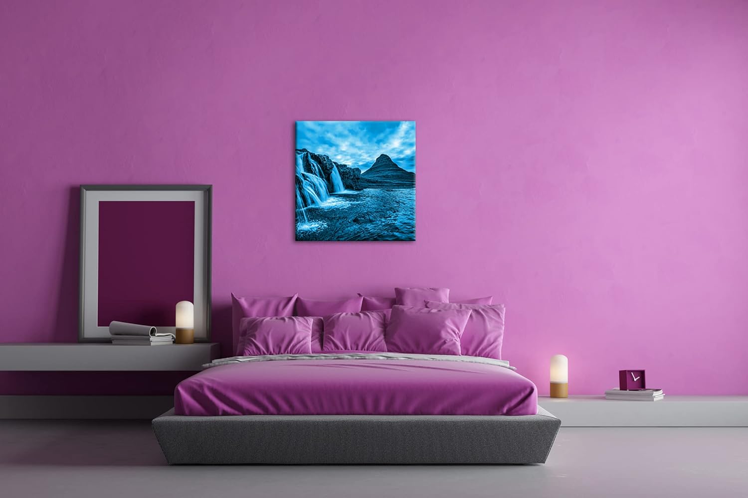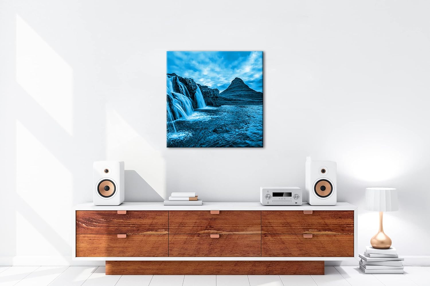 deyoli atemberaubende Wasserfälle in Island Format: 60x60 Effekt: Monocrome Blau als Leinwand, Motiv