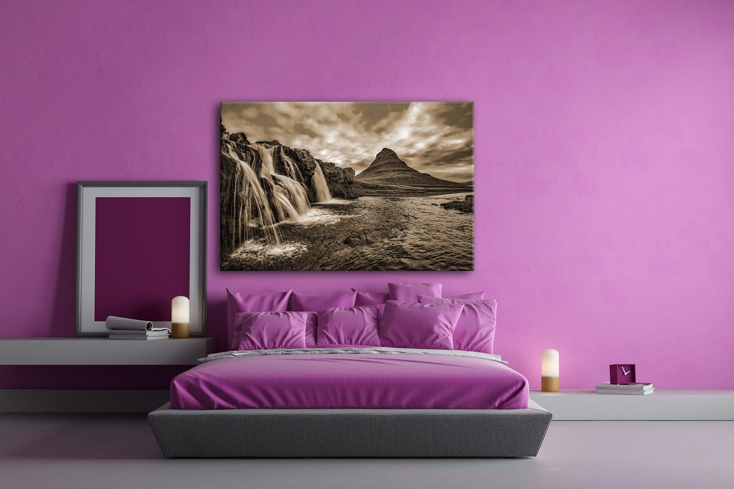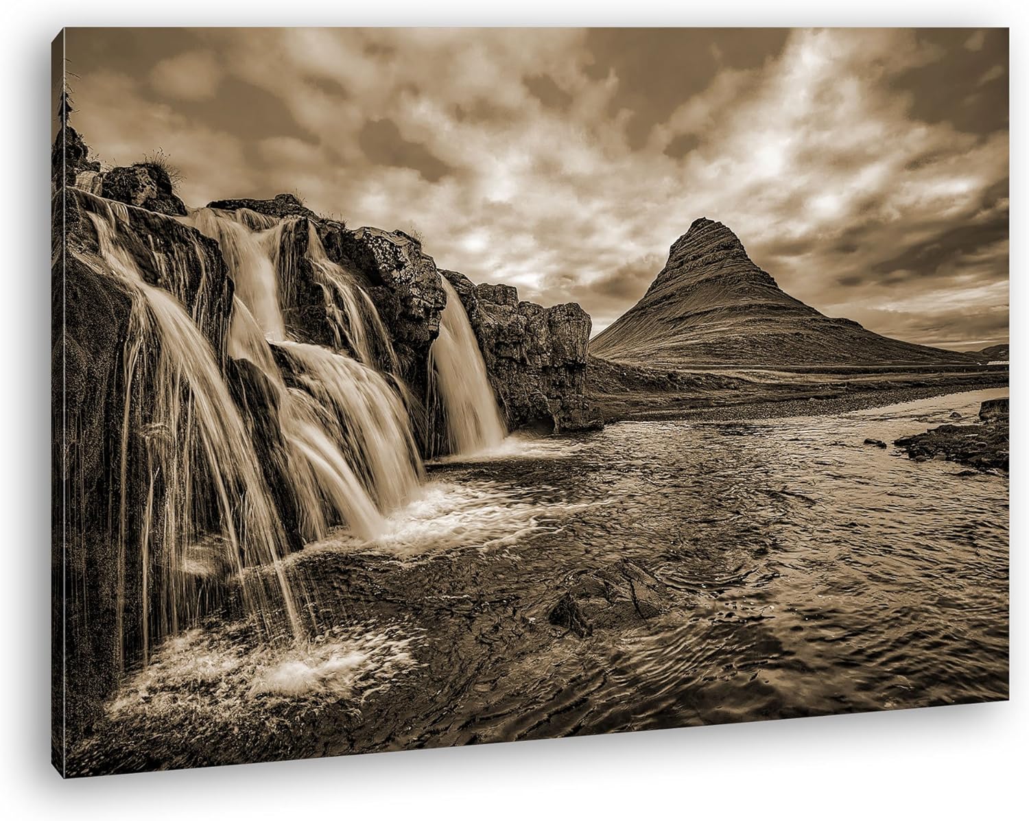 deyoli atemberaubende Wasserfälle in Island Format: 80x60 Effekt: Sepia als Leinwand, Motiv fertig g