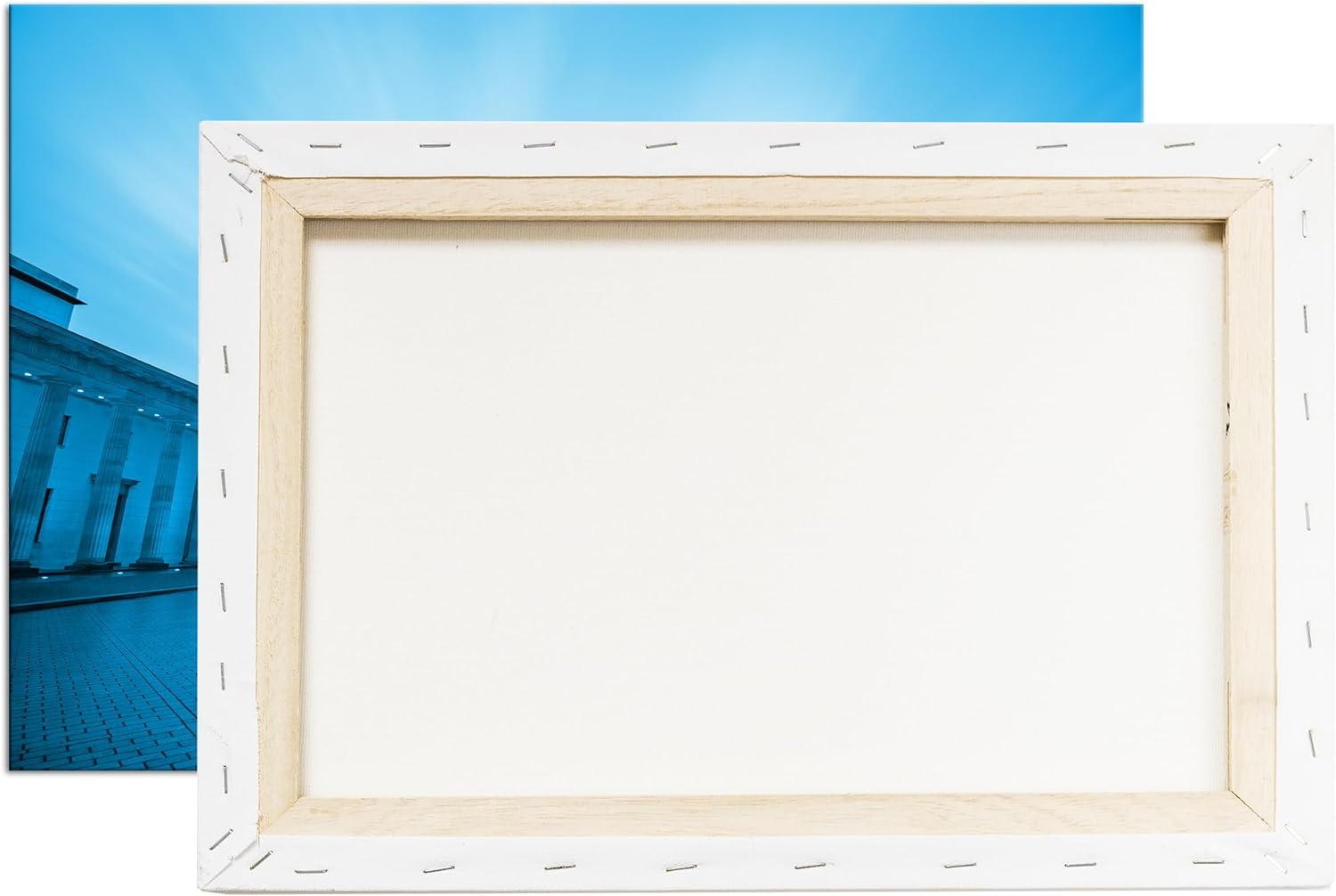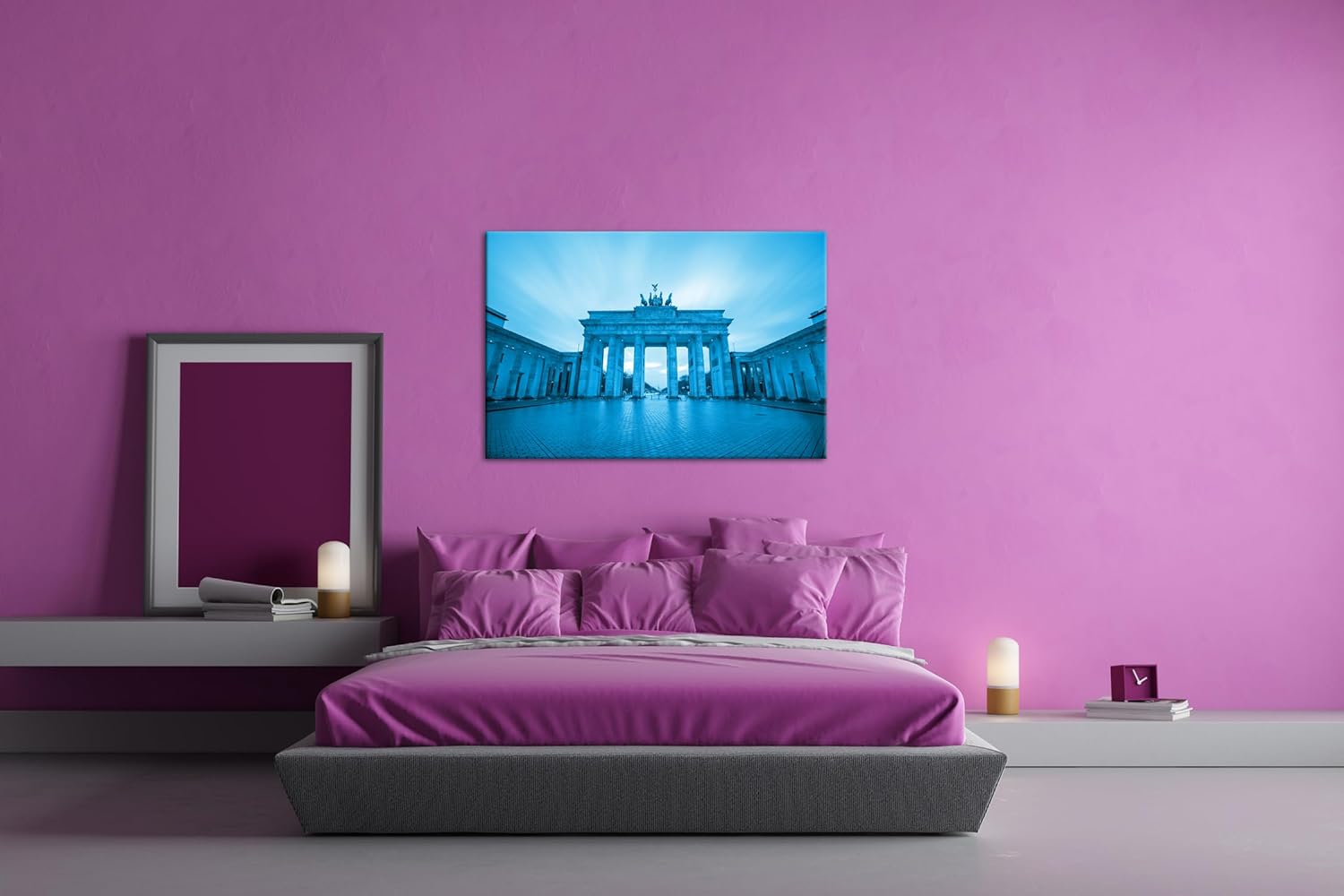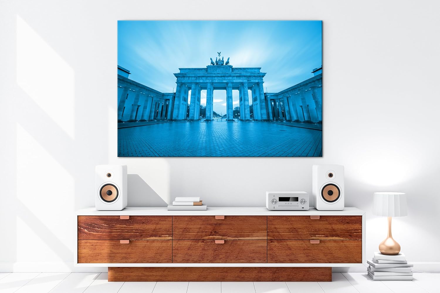 deyoli Brandenburger Tor mit Sonnenstrahlen Format 80x60 Effekt: Monocrome Blau als Leinwandbild, Mo