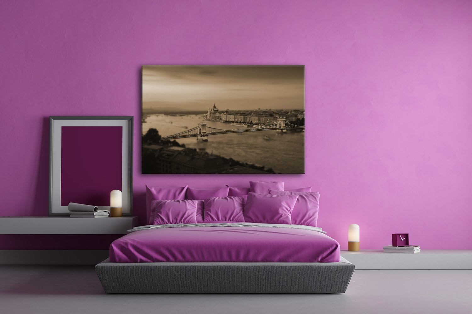 deyoli Budapest bei Abenddämmerung Format: 80x60 Effekt: Sepia als Leinwand, Motiv fertig gerahmt au