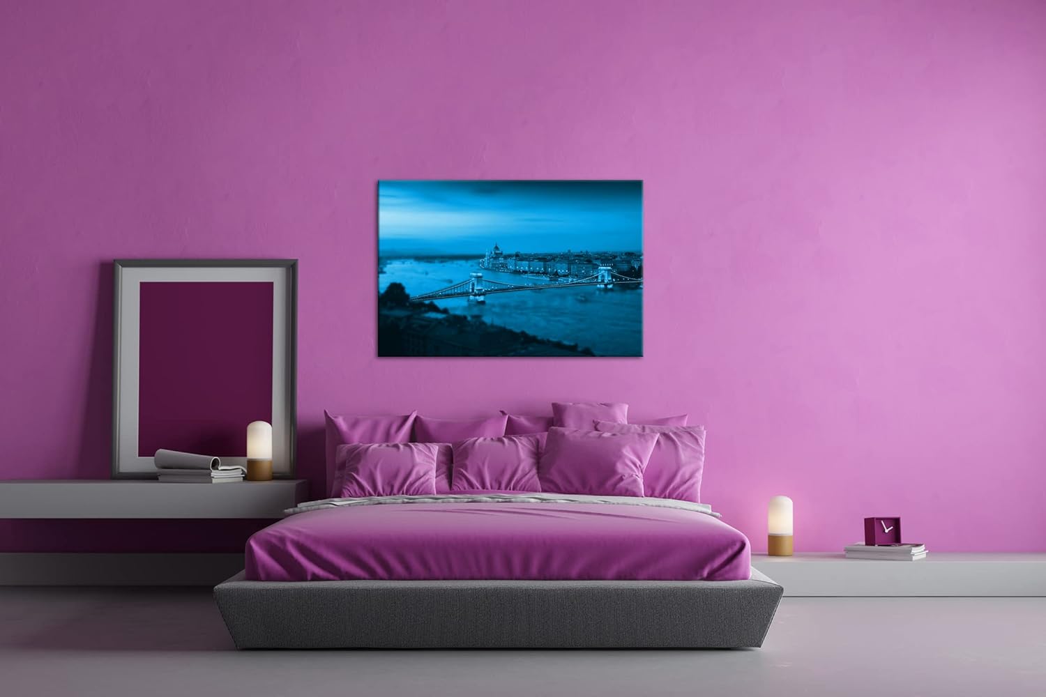 deyoli Budapest bei Abenddämmerung Format: 80x60 Effekt: Monocrome Blau als Leinwand, Motiv fertig g