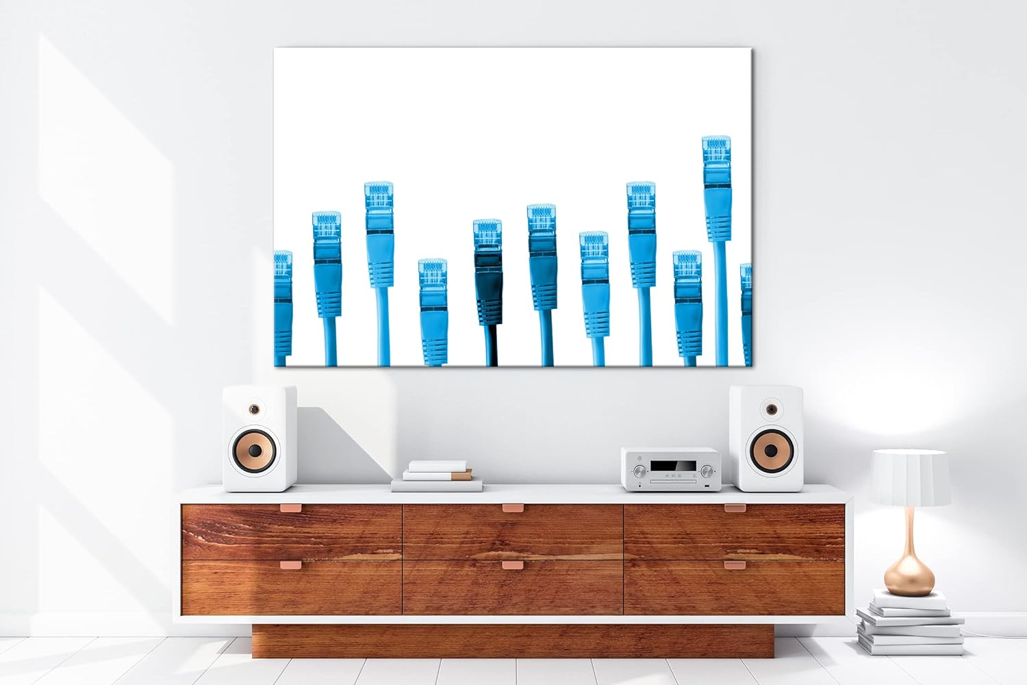 deyoli bunte Netzwerkkabel Format 80x60 Effekt: Monocrome Blau als Leinwandbild, Motiv fertig gerahm