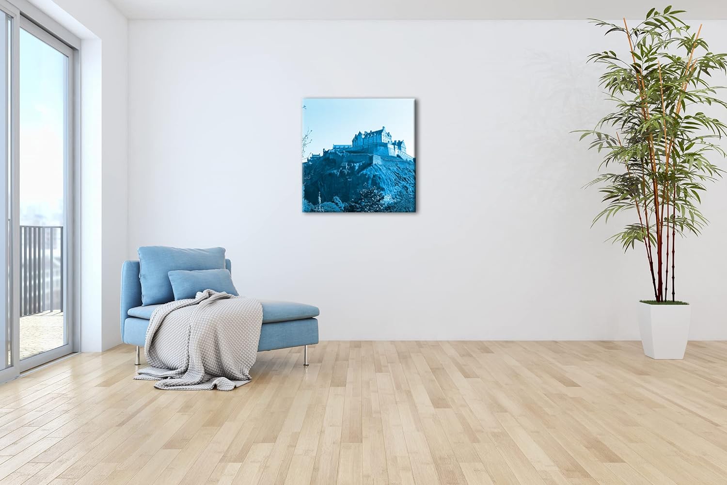 deyoli Burg in Edinburgh Schottland Format: 70x70 Effekt: Monocrome Blau als Leinwandbild, Motiv fer