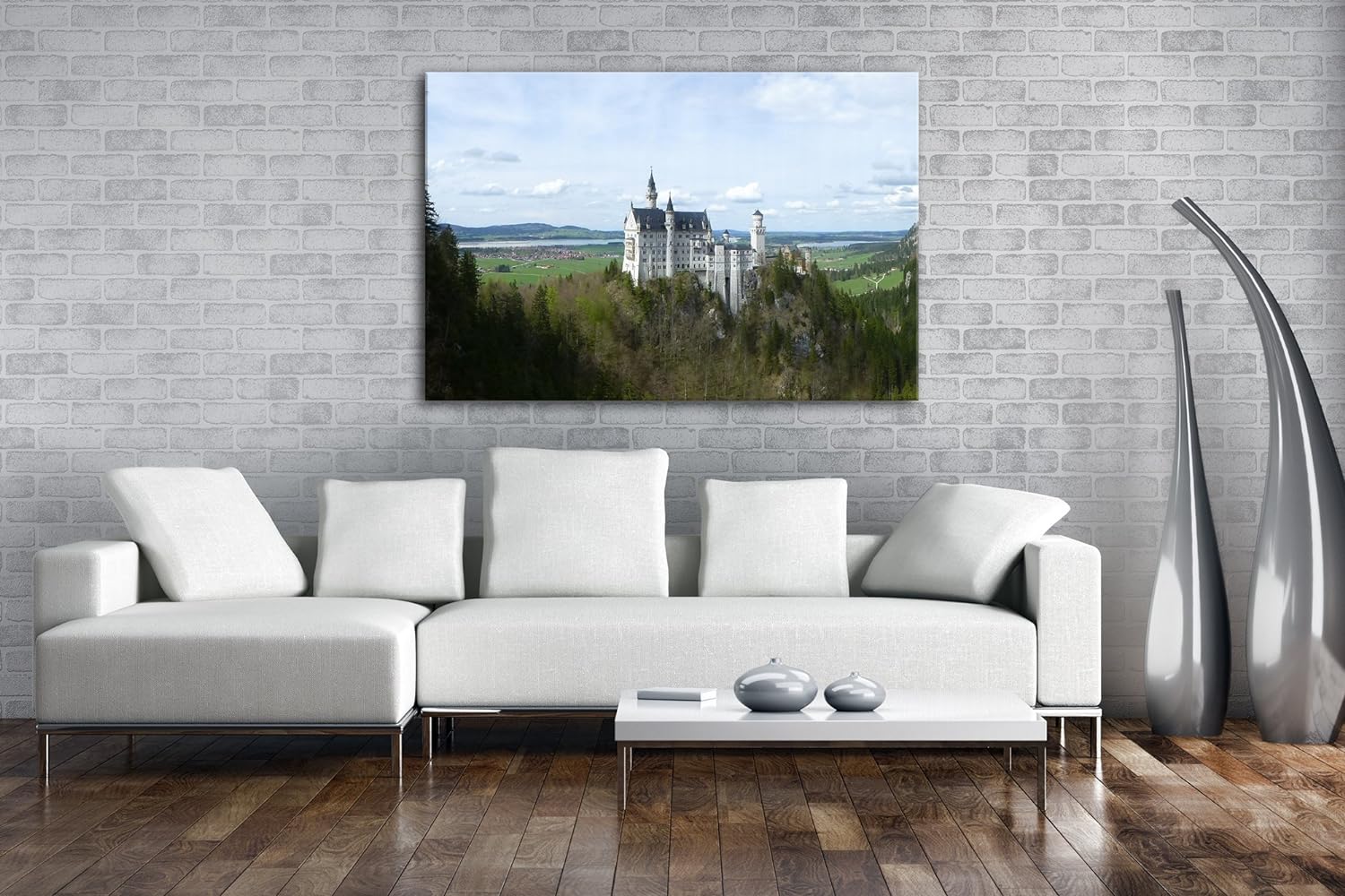 deyoli Burg Neuschwanstein Format: 80x60 als Leinwandbild, Motiv fertig gerahmt auf Echtholzrahmen,