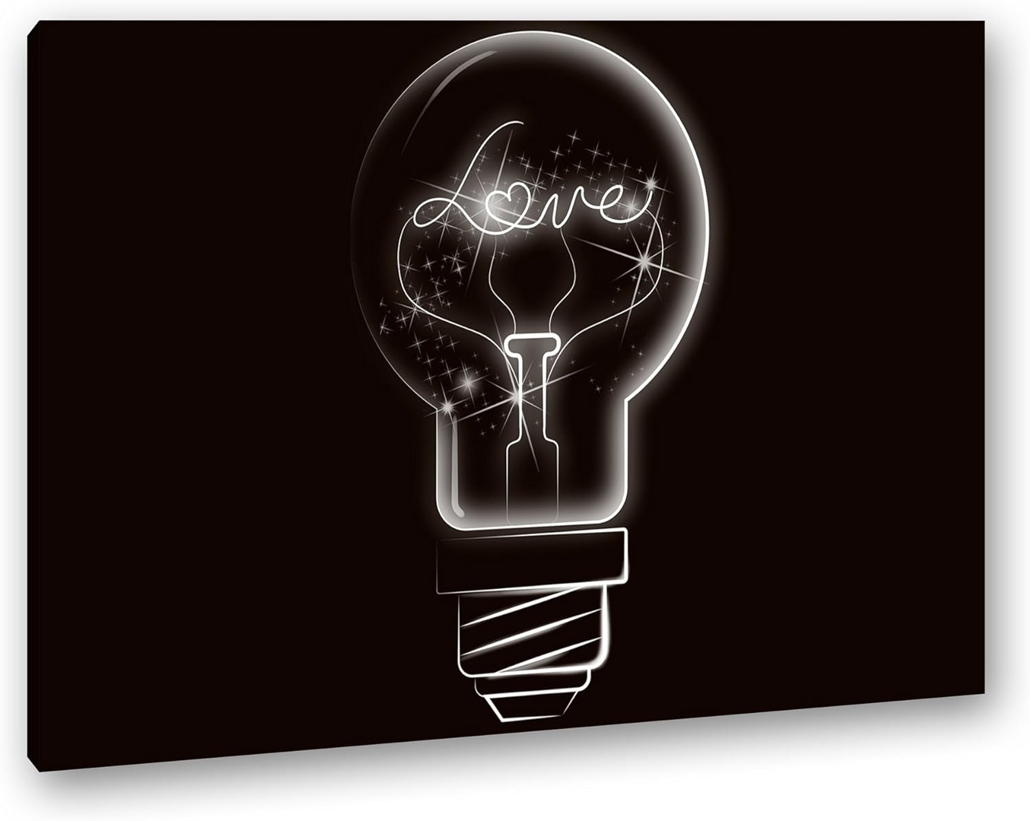 deyoli Dark interessante Glühbirne mit Love Schriftzug Format: 80x60 als Leinwandbild, Motiv fertig