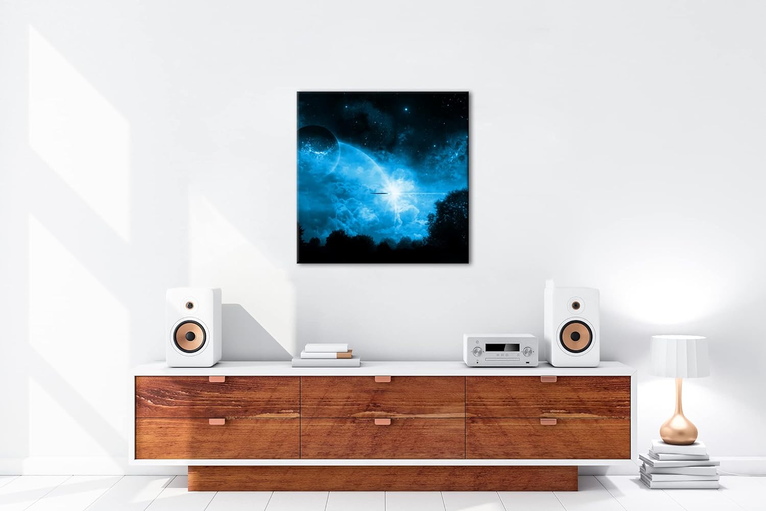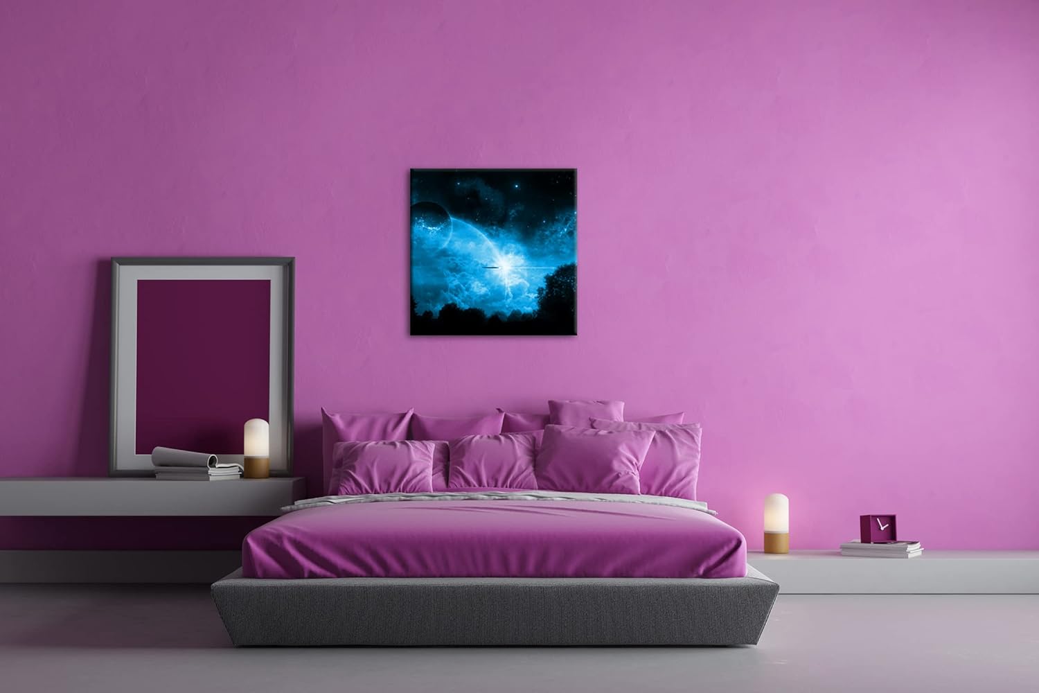 deyoli Dark UFO in Einer Sternengalaxy Format: 70x70 Effekt: Monocrome Blau als Leinwandbild, Motiv