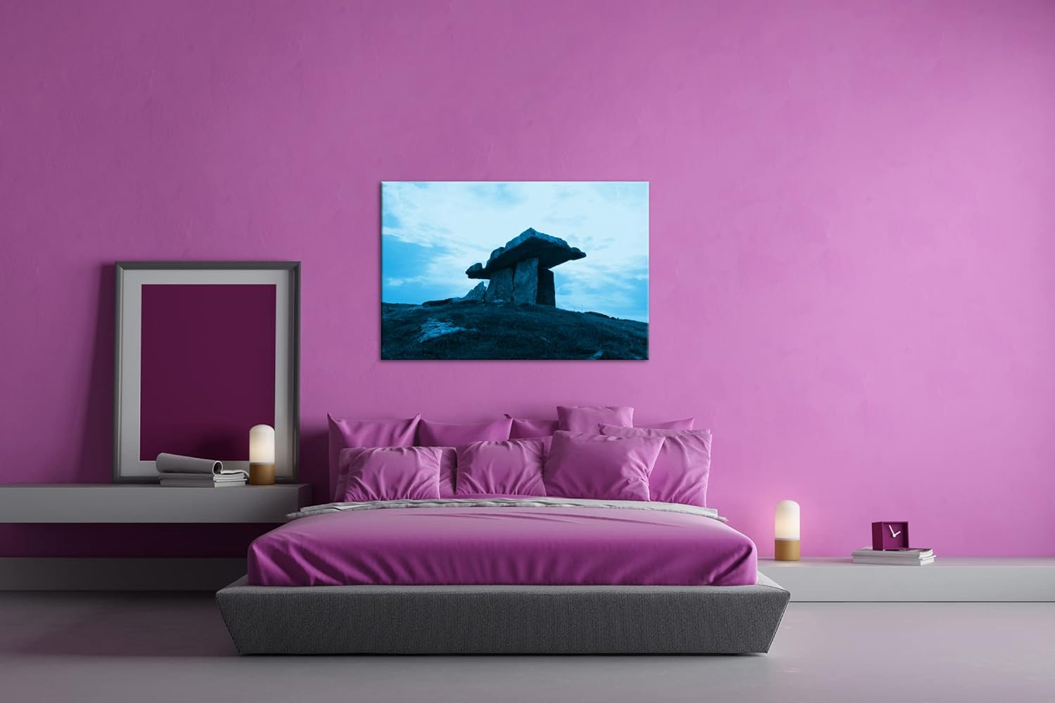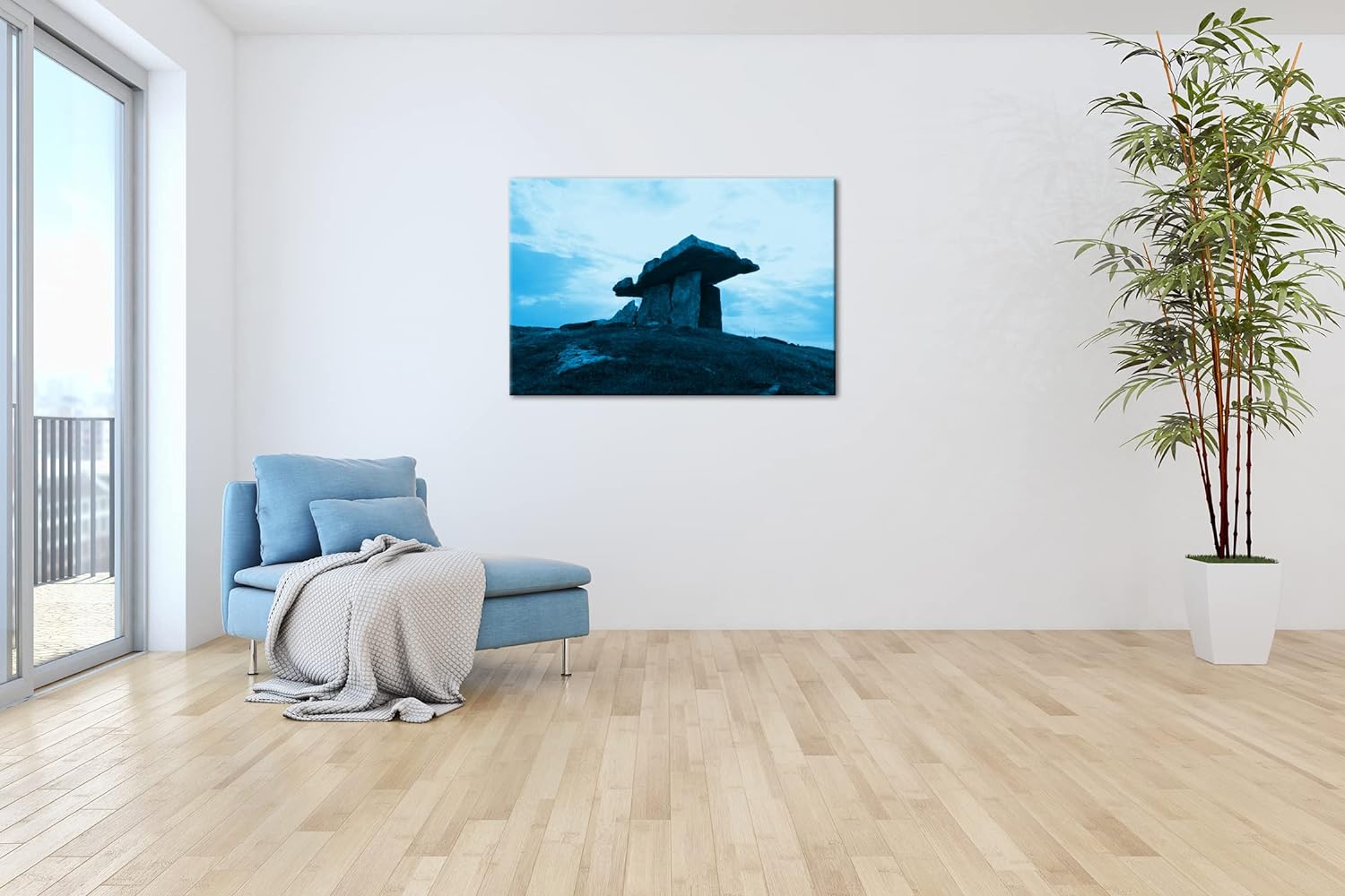 deyoli Dolmengrab in Irland Format: 80x60 Effekt: Monocrome Blau als Leinwandbild, Motiv fertig gera