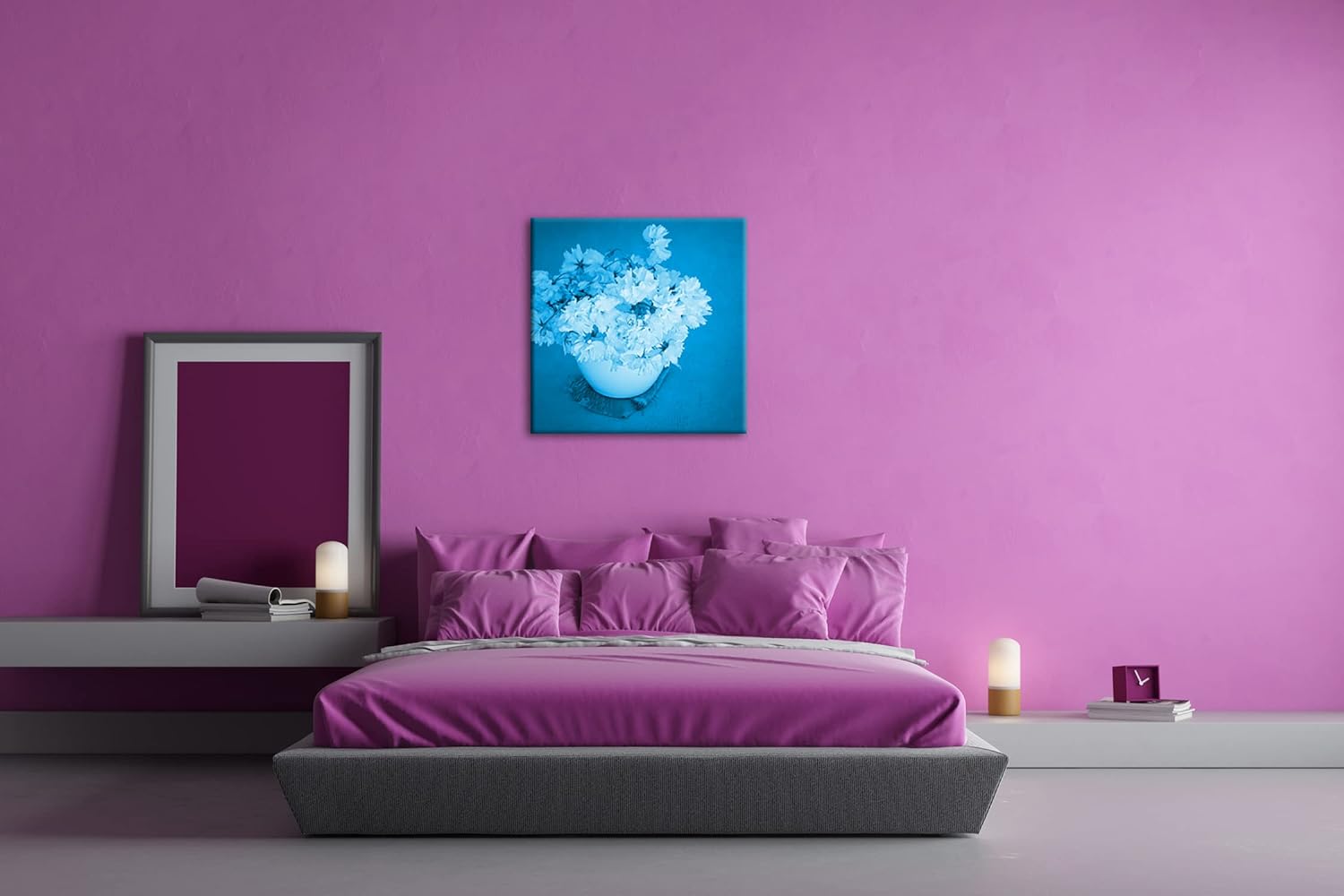 deyoli edle Blumen in Einer Vase Format: 70x70 Effekt: Monocrome Blau als Leinwand, Motiv fertig ger