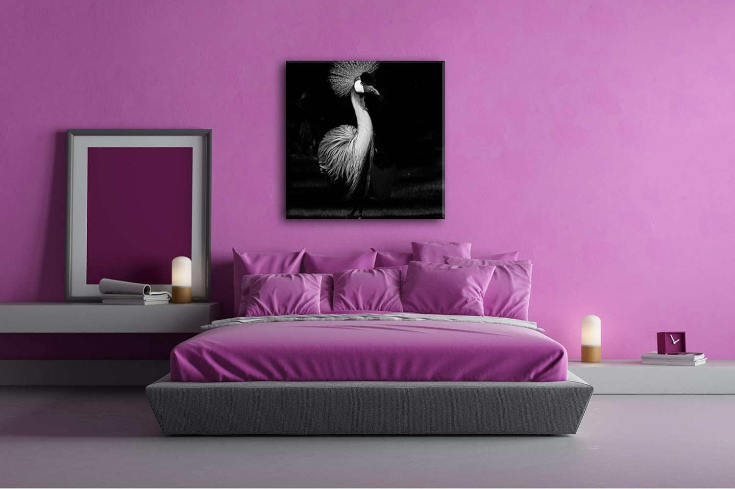 deyoli edler Kranich Format: 60x60 Effekt: Schwarz&Weiss als Leinwandbild, Motiv fertig gerahmt auf