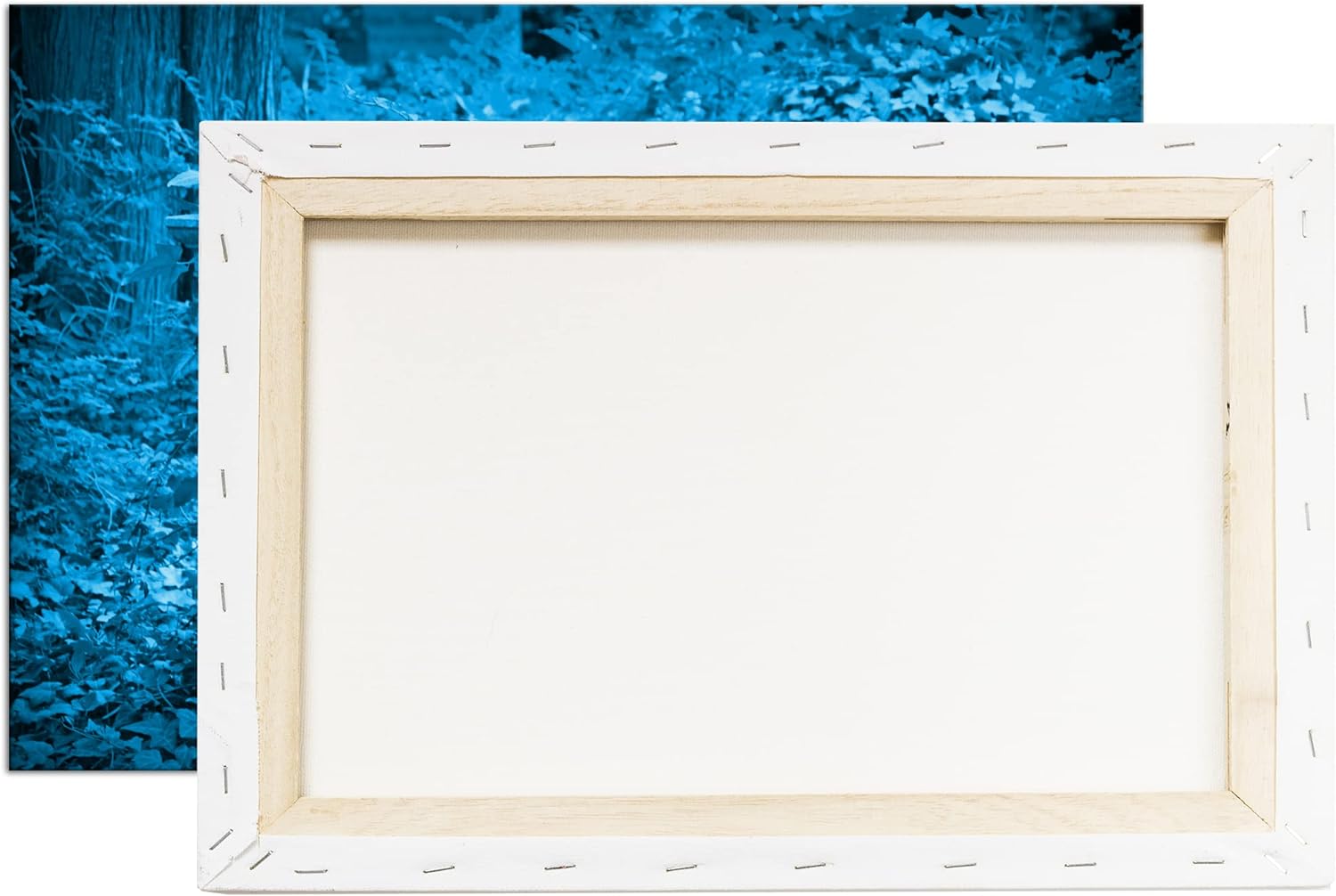 deyoli Efeu bewachsene Steinsäule Format 80x60 Effekt: Monocrome Blau als Leinwandbild, Motiv fertig
