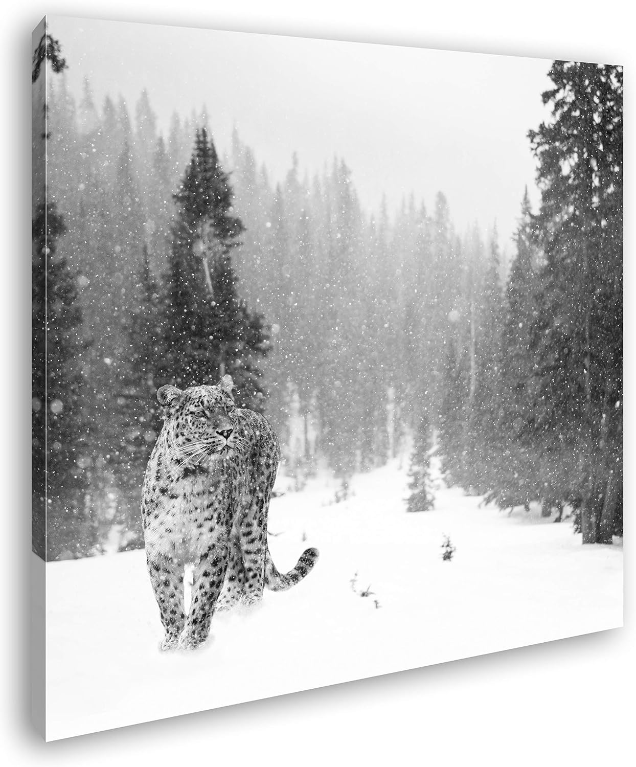 deyoli einsamer Leopard im Schnee Format: 60x60 Effekt: Schwarz&Weiss als Leinwandbild, Motiv fertig