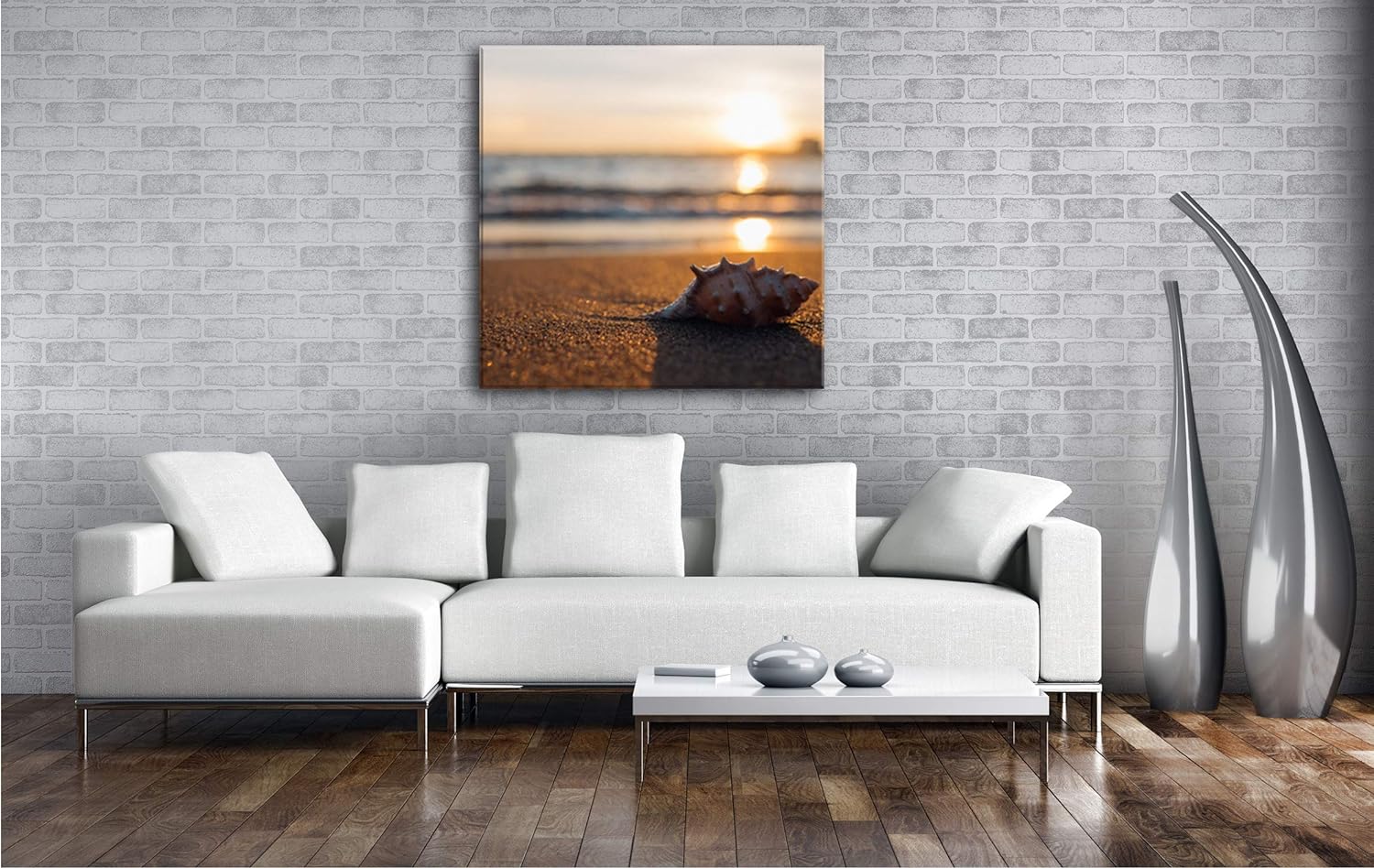 deyoli einzelne Muschel am Strand Format: 60x60 als Leinwand, Motiv fertig gerahmt auf Echtholzrahme